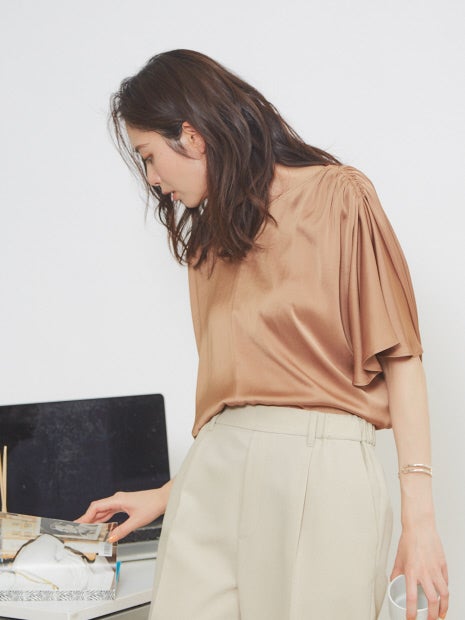 ・とろみ感のあるサテン素材が雰囲気たっぷりなブラウス。