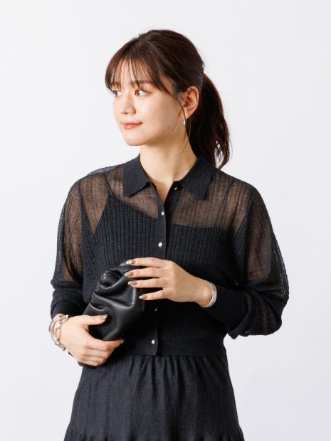 透け感が可愛い、ドライタッチなニットカーディガン。