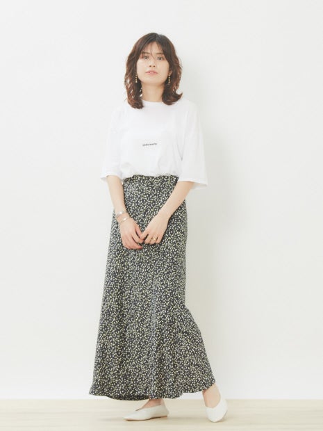 ウエストまわりはすっきりと、裾にかけて自然に広がるシルエットが大人な印象です。