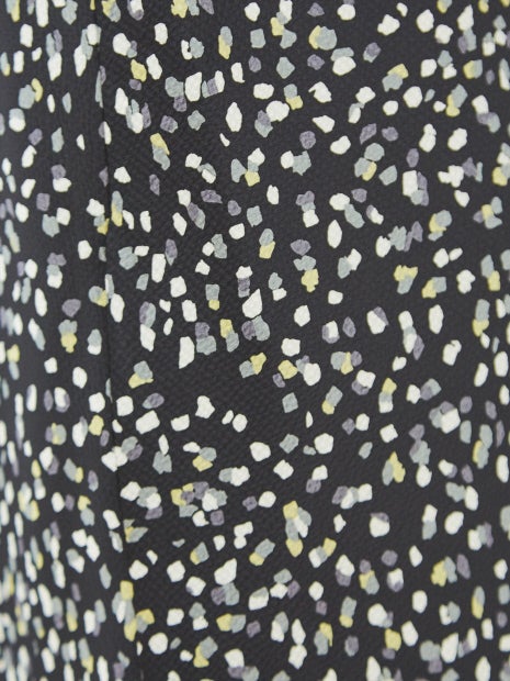 柔らかいカラーのランダムドットが絶妙で、普通のドット柄ほど甘くならず使いやすく◎