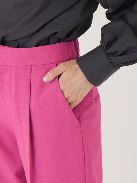 強撚ウールのような表面感を表現した、ウール素材のような暖かみと上品さが漂うパンツです。