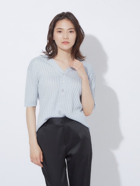 ・品のあるハーフスリーブデザインでキレイめスタイルにもフィットします。