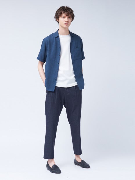 【デザイン】ABAHOUSEの定番Vネックシャツが半袖の夏仕様になって登場。バンドカラーやレギュラーカラーとはひと味違ったVネックデザインが新鮮に映えるデザインシャツ。キレイめカジュアルな雰囲気は、開け閉めで着用の印象が変わりコーディネートに合わせてお楽しみいただけます。【素材】麻のようなタッチのポリエステル素材を使用。気持ちの良いサラッとした肌触りで、フシ感もありドライな質感に。麻のような大きなシワになりにくいのも魅力のひとつ。【コーディネート】前を空けて夏のシャツ羽織りとしても、ネックを活かしインナーとしても活躍します。