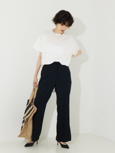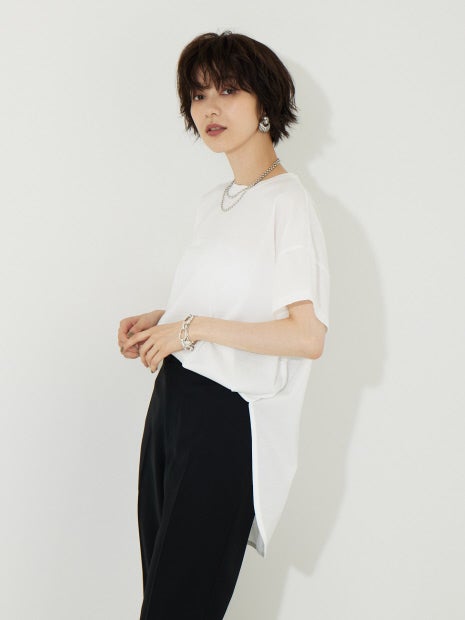 後ろ裾が長めのデザインなので、パンツスタイルと相性の良いアイテムです。