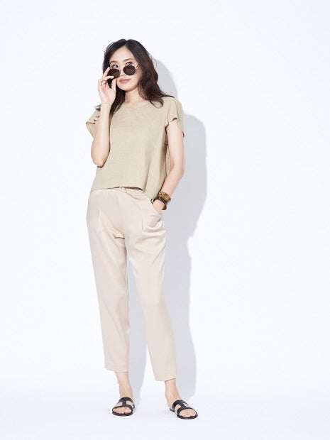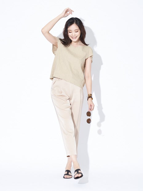・清潔感漂うリネン×レーヨンのシンプルブラウス。