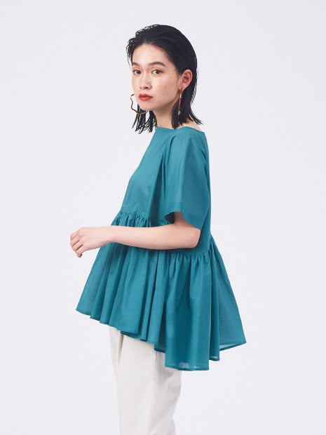 ペプラム×シアーでトレンド要素をたっぷり取り入れたブラウス。