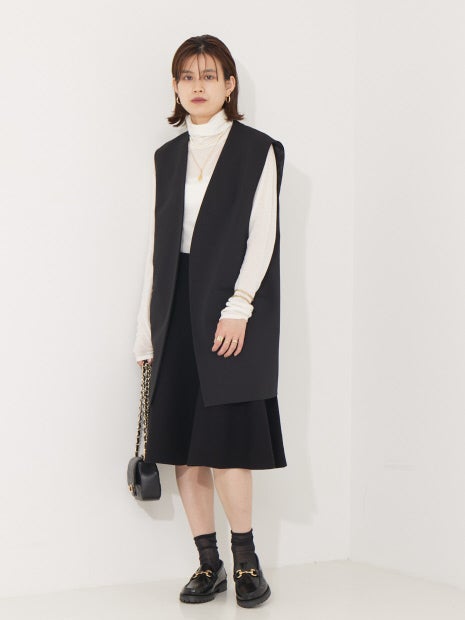 ノーカラーなので、襟なしでも襟ありシャツブラウスでも相性抜群。