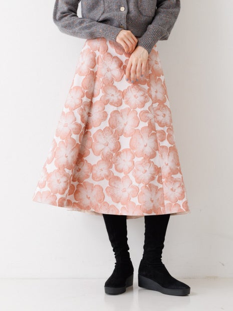 表面感ある華やかなフラワーモチーフのジャカードを使用。