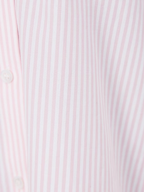 長めの着丈とコンパクトなスタンドカラーが今年らしい印象のシャツ。
