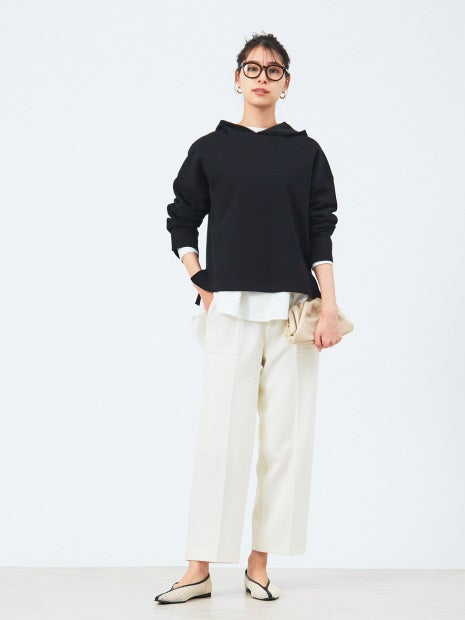 ・編目の詰まったニット素材を使用し、スウェットライクな大人パーカーに仕上げました。