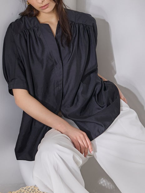 ギャザーを施し、ふんわり柔らかい雰囲気に。