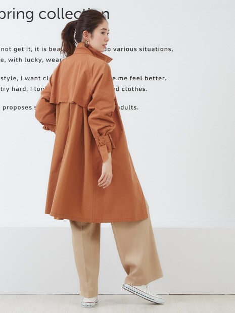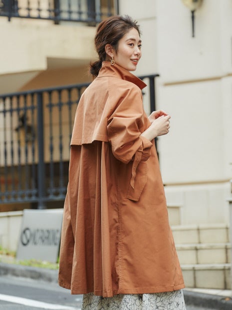 後ろのギャザー部分を異素材にし、フレアシルエットで女性らしい印象に。