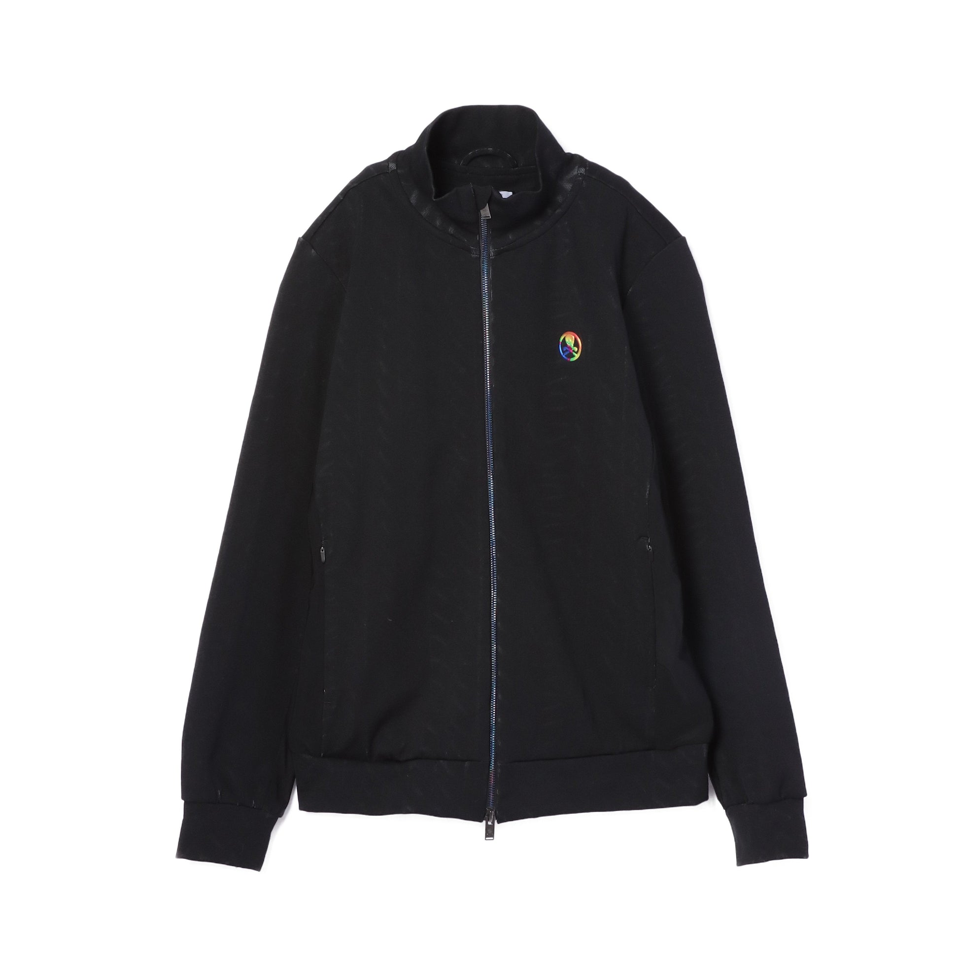 2021 AUTUMN | WINTER COLLECTIONホールド感に優れるハイテンションジャージー素材を採用したジャージートップ。生地が伸びることでブランドロゴが現れる、驚きのギミックを施した遊び心満載の一着です。左胸にレインボーカラーの3Dサークルスカルをあしらい、フロントのファスナーにはロゴ刻印入りの引き手付き。同素材のボトムス(MLM-1C-AT04)とのコーディネートがおすすめです。