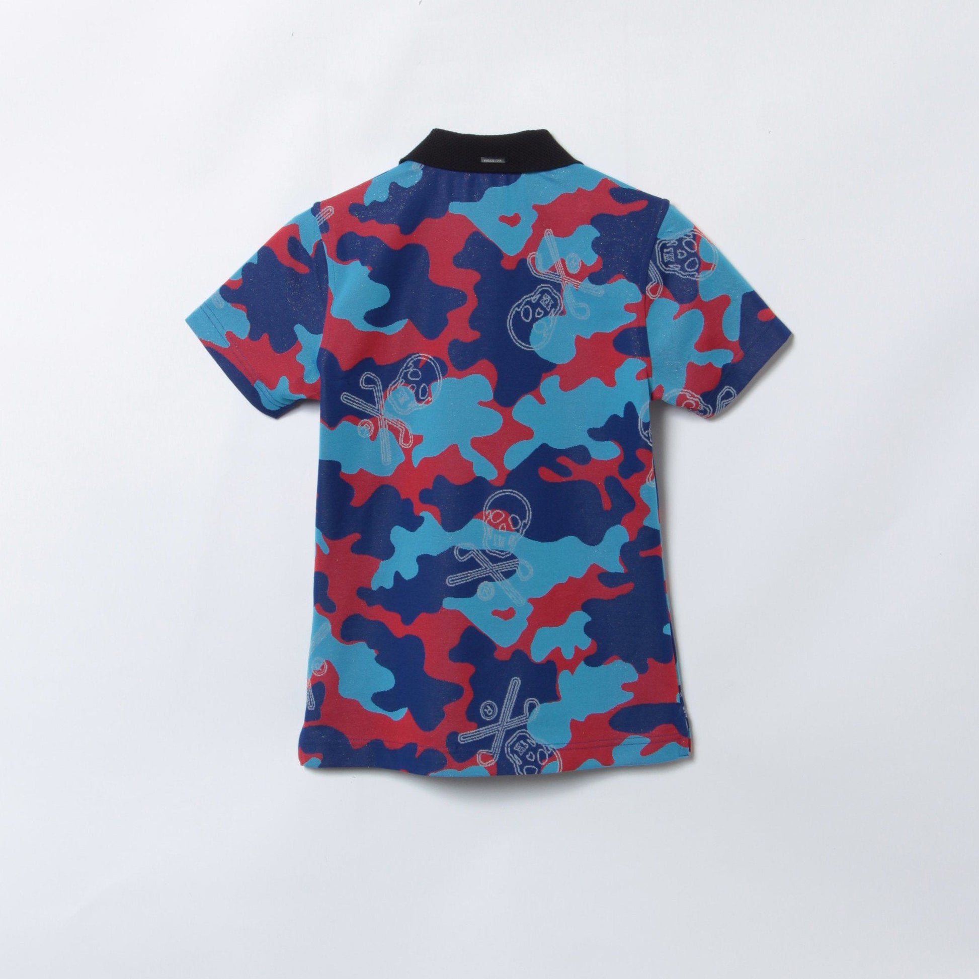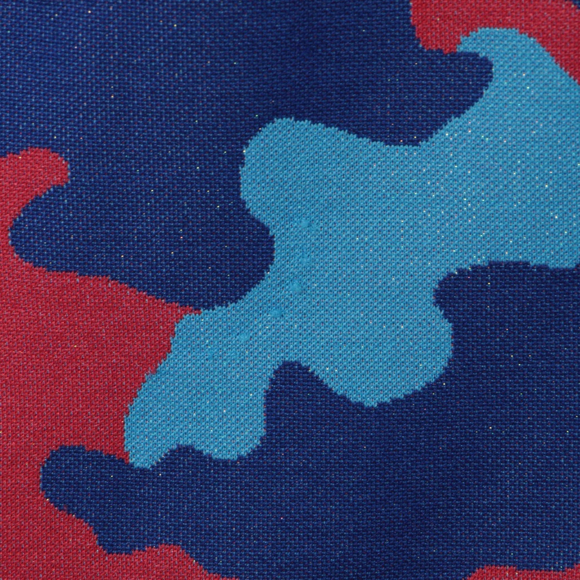 クラウドカモフラージュ柄にアウトラインスカルを融合した、上品な光沢感のあるジャカード素材のクレリックポロ。左胸にメタリックカラーのアイアンスカルワッペン、襟に"GOLF OR DIE"の立体刺繍、フロントのプラケットにロゴ刻印入りのメタリックボタン、右脇にスカルスイング刺繍を配しました。身頃にややゆとりをもたせつつ、楽なスイングが可能なレギュラーフィットパターンを採用しています。