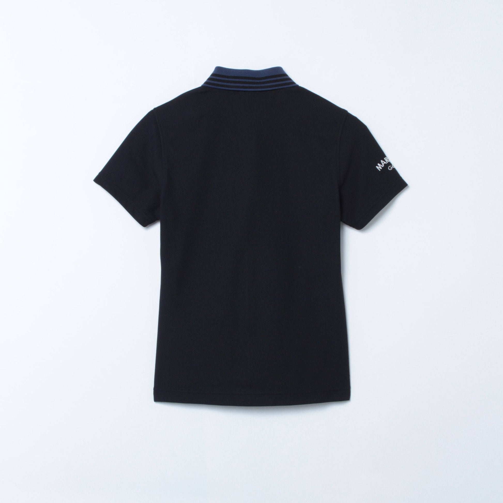 ペットボトルを原料とするリサイクルポリエステル糸を使ったハイゲージ裏鹿の子素材を採用。吸水性に長け、UVカット効果も備えています。襟はしっかりと編み上げられたスポーティなラインデザインで、襟を立てた際も美しいラインをキープ。前立ての裏側には同色のヘリンボンテープを装着。ボタンを外すとテープがチラリと見える、洒脱な着こなしがお楽しみいただけます。