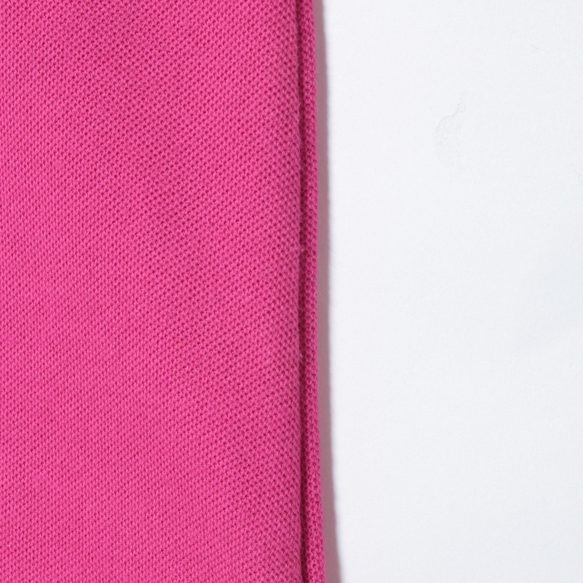 カジュアルな素材感と機能性を両立した、ブランドを代表するオリジナル素材をリニューアルしました。表面はコットン、裏面にドライタッチのリサイクルポリエステル糸を使用。DRY FAST加工で速乾性をもたせ、快適な状態を長時間キープします。襟部分は本体の素材に合わせ、綿のような風合いをもつポリエステル糸と、さりげないラメ糸で編み上げることで、美しい形状を保ちます。身幅に少しゆとりをもたせたレギュラーフィットパターンを採用し、上品なシルエットを保ちながら楽にスイングすることができます。