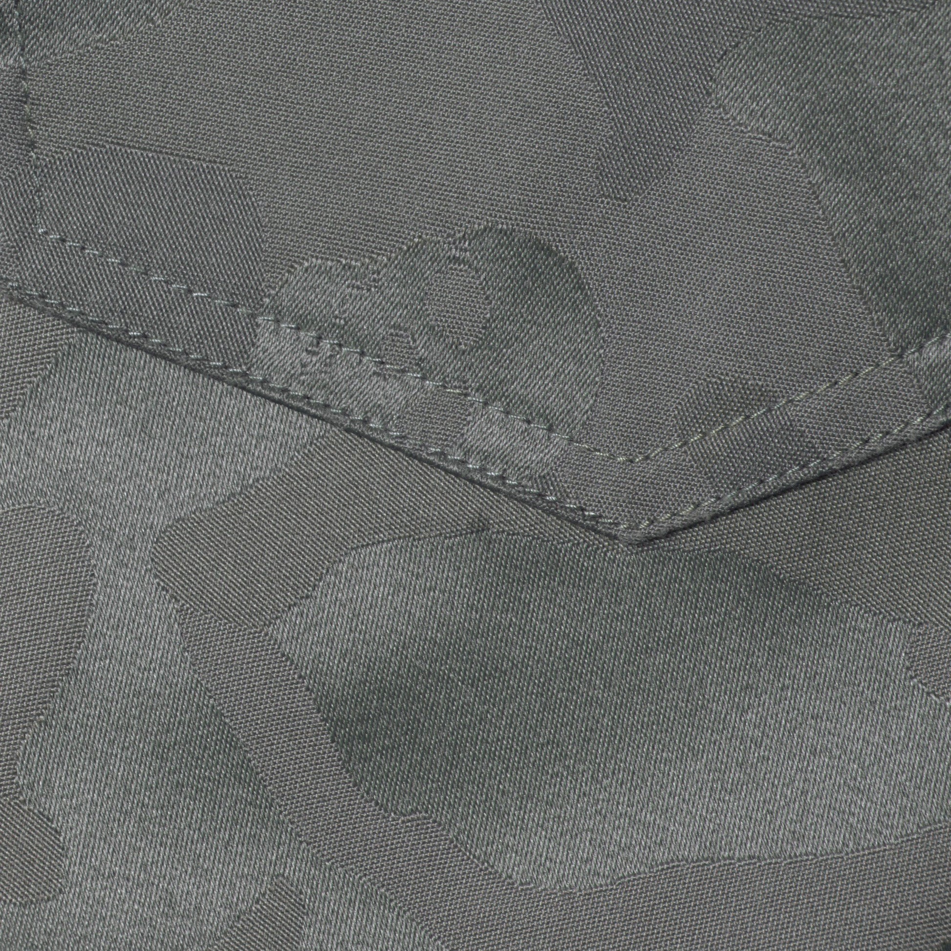 シンボリックなオリジナルカモフラージュ柄ストレッチジャカード素材を採用。ポリエステルの形態安定性と軽量性に、コットンの柔らかい風合いをプラス。ほどよいストレッチ性と上品な光沢感が特徴です。ヨーク部分はホールド感を高めるハイテンションジャージー素材、ウエストにはゴムインベルを採用。耐久性、寸法安定性、着心地のよさを追求した一着です。