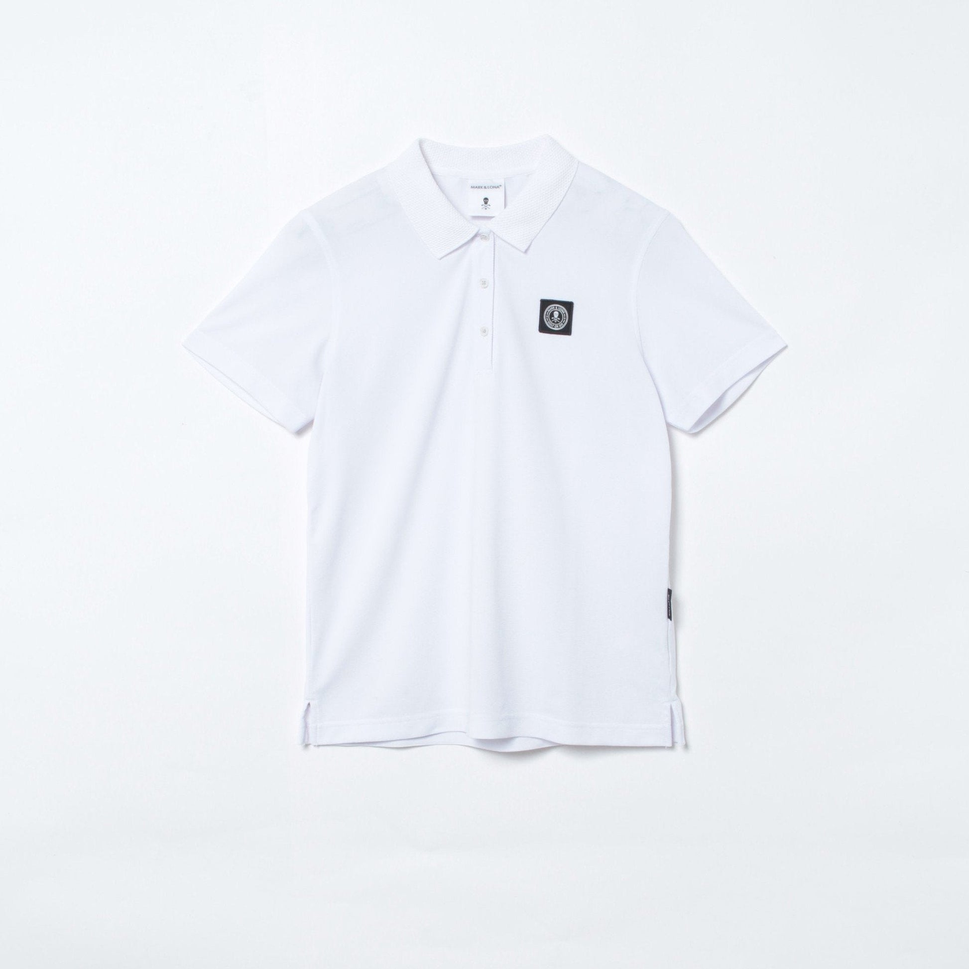 ドライタッチで快適な着心地が魅力の半袖ポロ。左胸にサークルスカルデザインの織りネームワッペン、左脇にジャカードでロゴを表現したピスネームを配し、襟吊りにミニサイズのブランドロゴをプリントしました。フロントのロゴ刻印入りボタンは、植物由来の原料を用いたサステナブルな素材を使用しています。身幅に少しゆとりをもたせつつ、上品なシルエットと楽なスイングが可能なレギュラーフィットパターンです。