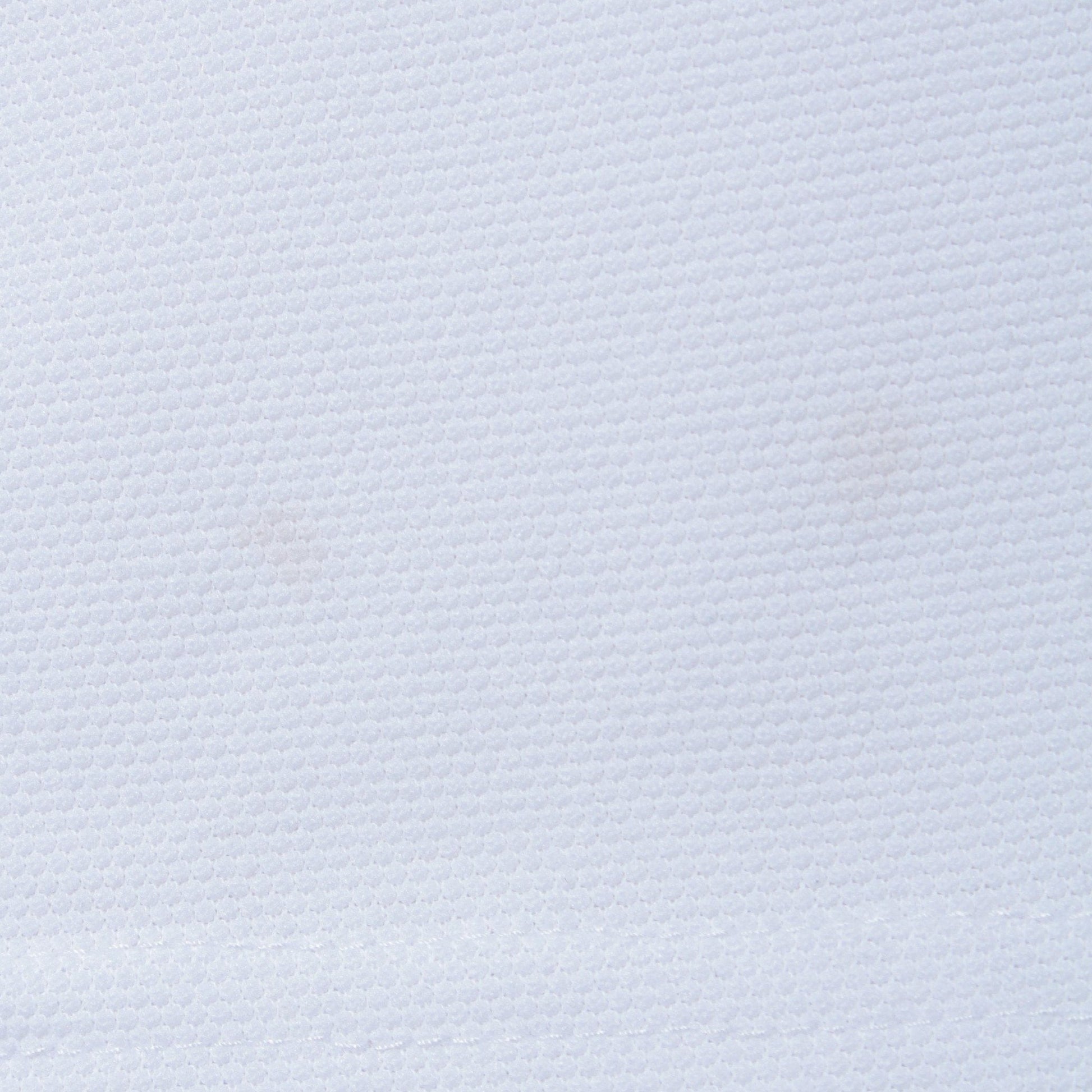 リサイクル糸を使用し、環境に配慮したサステナブル素材を採用。凹凸感のある構造によるドライタッチが特徴で、優れた吸水・速乾性により快適な状態をキープします。襟はしっかりと編み上げられたハニカム構造のジャカード生地。襟を立てた際も美しいラインをキープします。