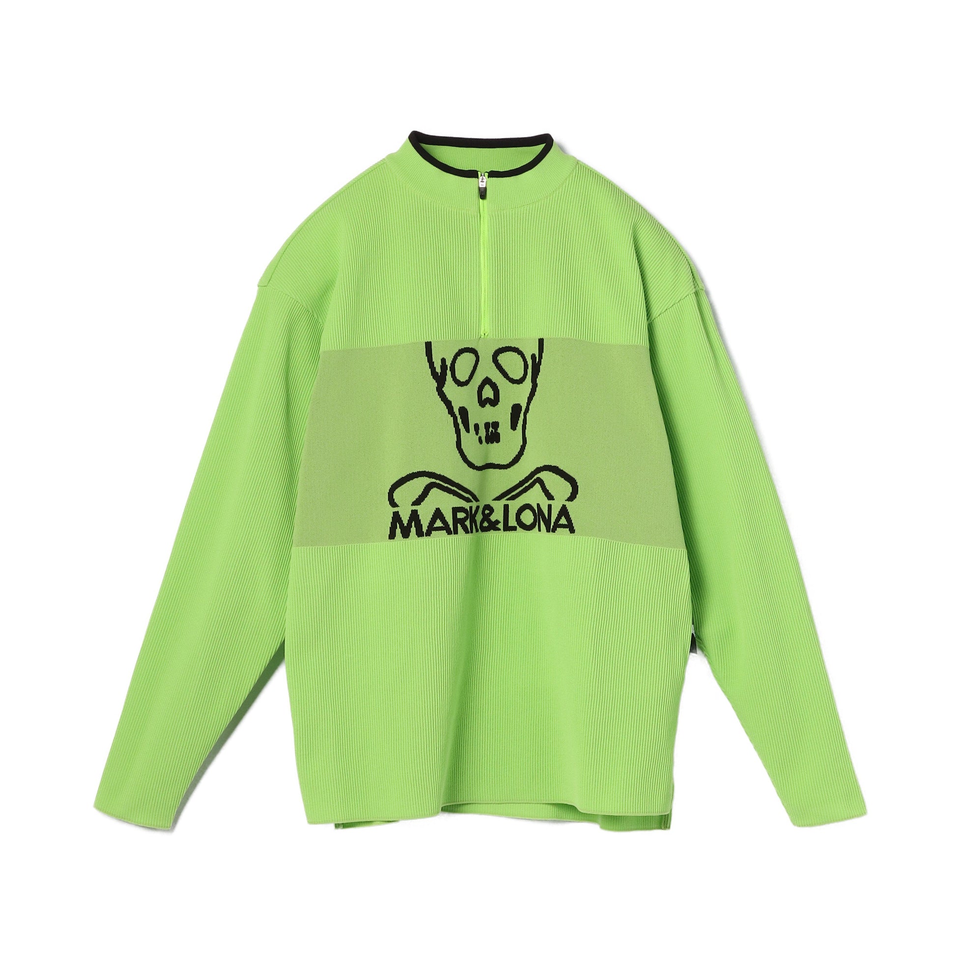 アイアンスカルのジャカードロゴが印象的なハーフジップニット。襟や袖口周りは程よくフィットしながら身頃はややゆとりのあるリラックスフィットシルエット。バイオ由来原料のエコ素材を使用し、畦編みで表現することで適度なストレッチと程よいクッション性を持ち、且つソフトな肌触りが特徴です。