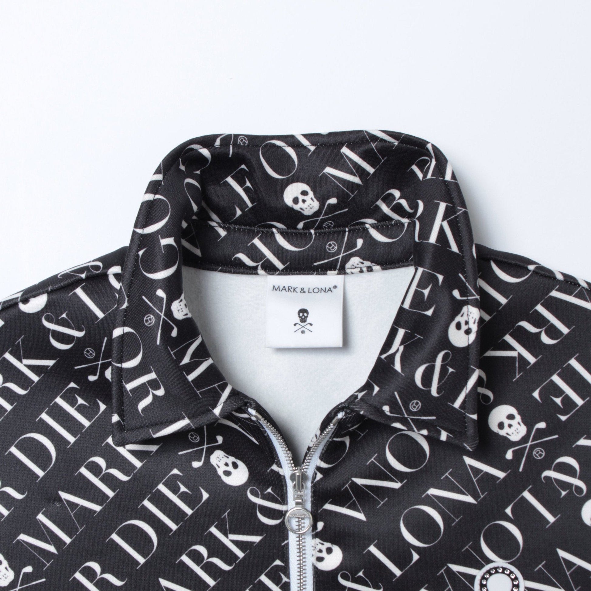 肌寒い秋ゴルフに重宝する、フリース素材のシャツ襟ポロ。フリース生地にアイアンスカルとブランドロゴのダイアゴナルプリント、左胸にブランクスカルに高輝度のストーンを並べたフェルトワッペンを配しました。寒い日のインナーとして、また一枚でも着用していただけるよう、身幅に少しゆとりをもたせた上品なシルエットを採用しています。