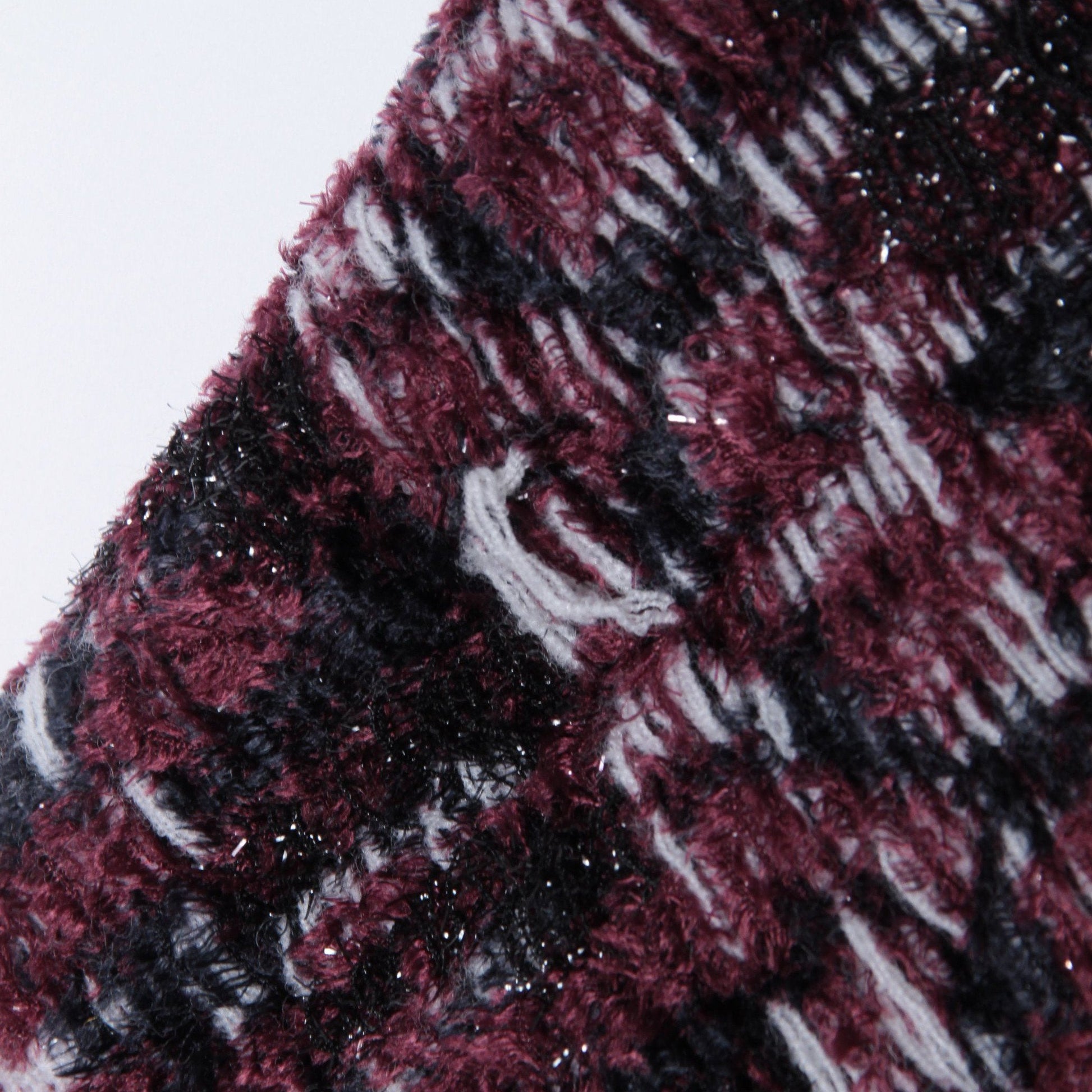 保温性と伸縮性に優れたウールブレンドのポリエステル糸と、豪奢なクリスタルラメのファー糸を組み合わせたエレガントなニット素材を採用。唯一無二の表情をもつ特別なニットは、どんなインナーと組み合わせても映えること間違いなしの主役級アイテムです。