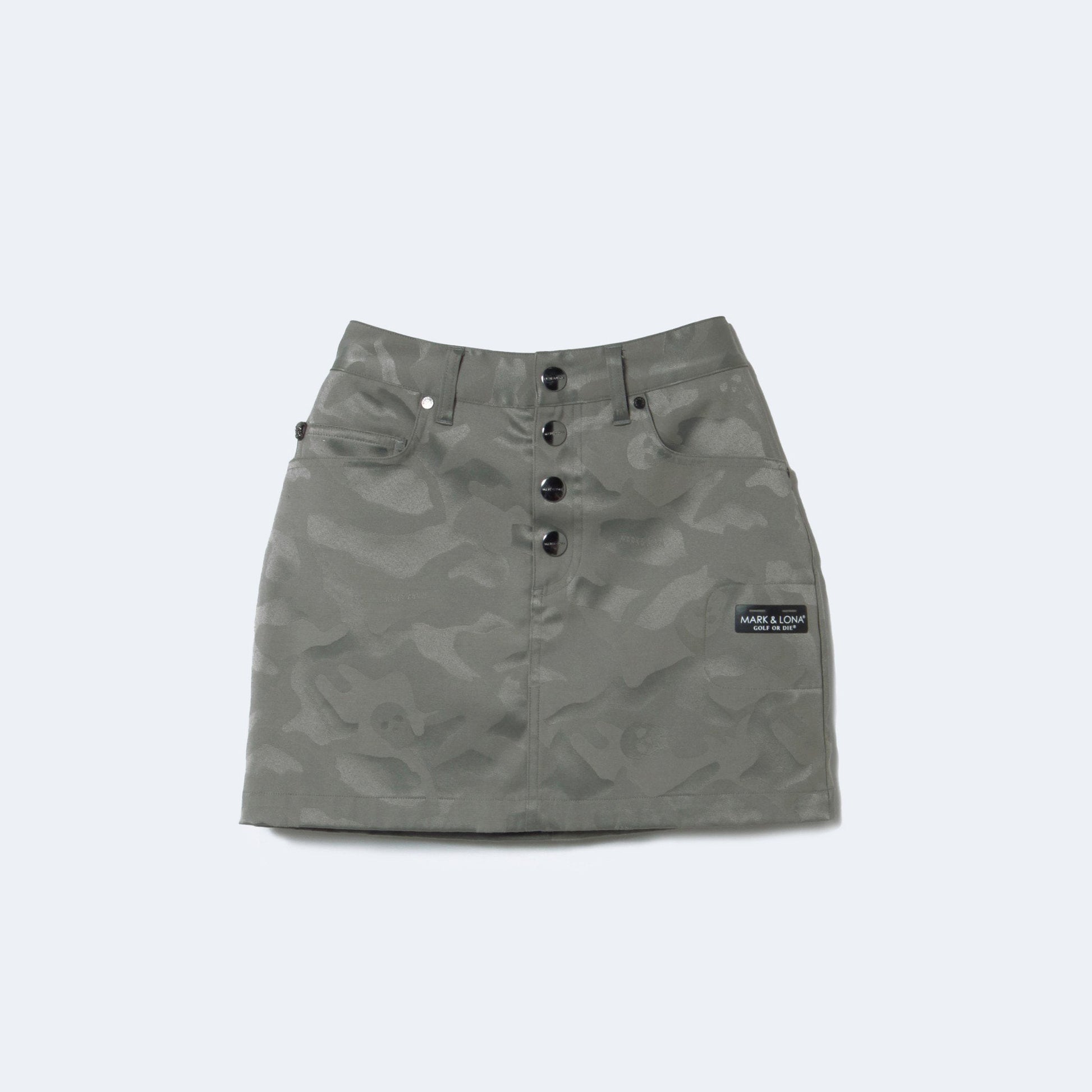 オールシーズン着用可能なTM CAMOタイトスカート。フロントにロゴ入りタックボタン、左腿にロゴ入りティーホルダー、後帯にサークルスカルデザインのロゴパッチをあしらいました。ミドルライズで、ストレッチの効いた素材特性により、タイトシルエットながら動きやすさも備えています。