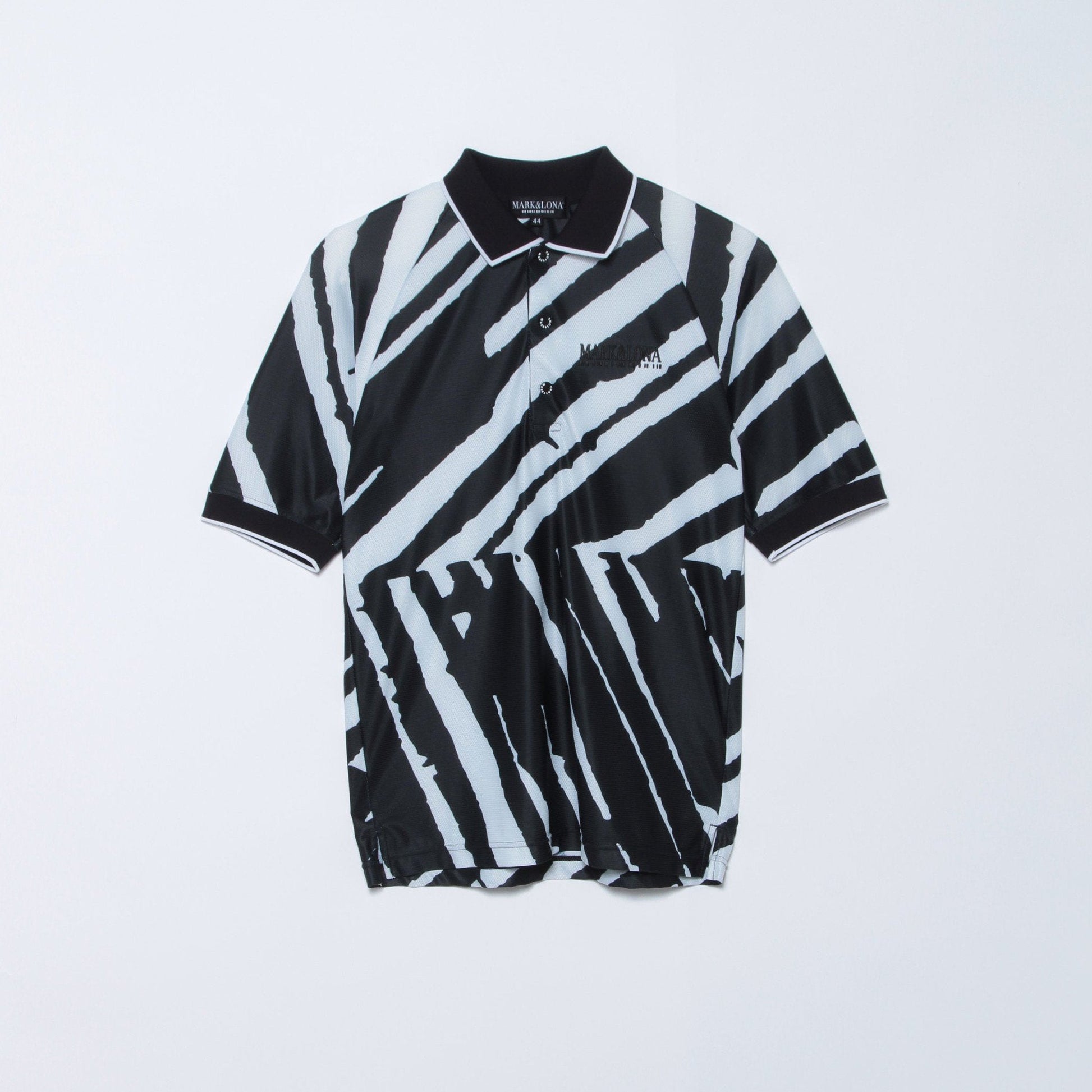 ダイナミックなグラフィックプリントを全面に施したラグランスリーブポロ。左胸にCODEロゴの超立体プリント、後ろ襟下にトライアングル型CODEロゴのシリコンプリント、フロントにロゴ刻印入りのプランサーボタンをあしらっています。襟と袖口を配色デザインにすることで、メリハリのあるデザインに仕上げました。身幅に少しゆとりをもたせつつ、上品なシルエットと楽なスイングが可能なパターンを採用。ラグランスリーブがより広い可動域に対応し、ストレスを感じることなくスイングなどの大きな動きが可能です。