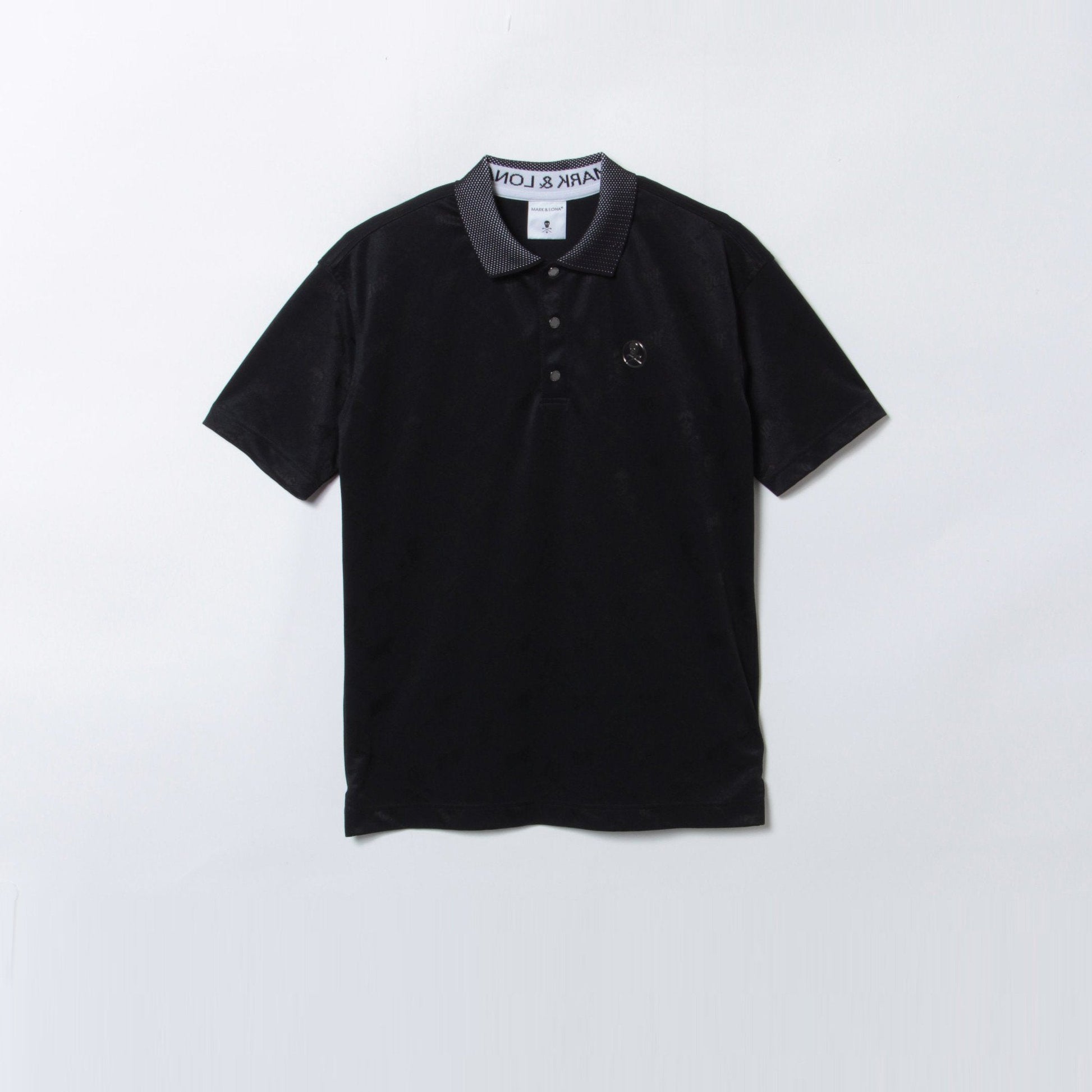 2022 SPRING | SUMMER COLLECTIONクラシカルなキルトスタイルのオリジナルパターンを、光沢のあるジャカード素材で表現した半袖ポロシャツ。左胸に3Dサークルスカル、ロゴ入りニットカラー、プラケットにはロゴ刻印のフラットメタルボタンを配しました。身頃と肩まわりにゆとりをもたせつつ、袖をシャープに仕上げた洗練されたスタイルです。