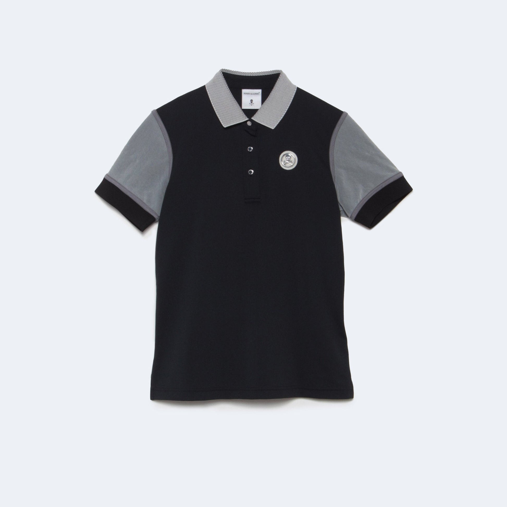 接触冷感素材を採用した、ひんやり快適な着心地が魅力の半袖ポロ。フロントに3Dサークルスカルワッペン。プラケットにロゴ入りメッキボタンを配しました。やや長めの袖口リブと、チュールを重ねた素材がレトロで可愛らしい印象に。アームホールと袖口に施した配色パイピングが全体を引き締めています。