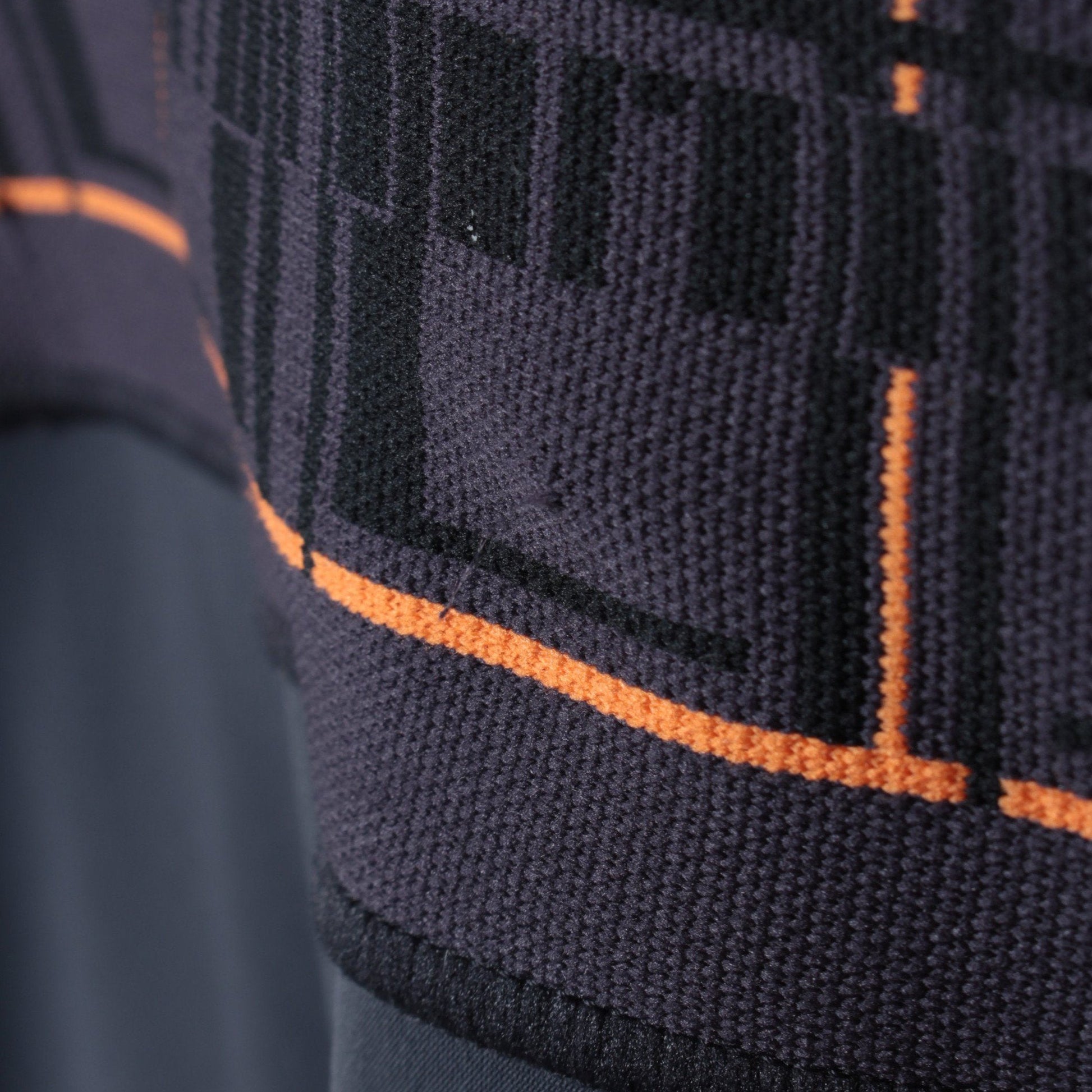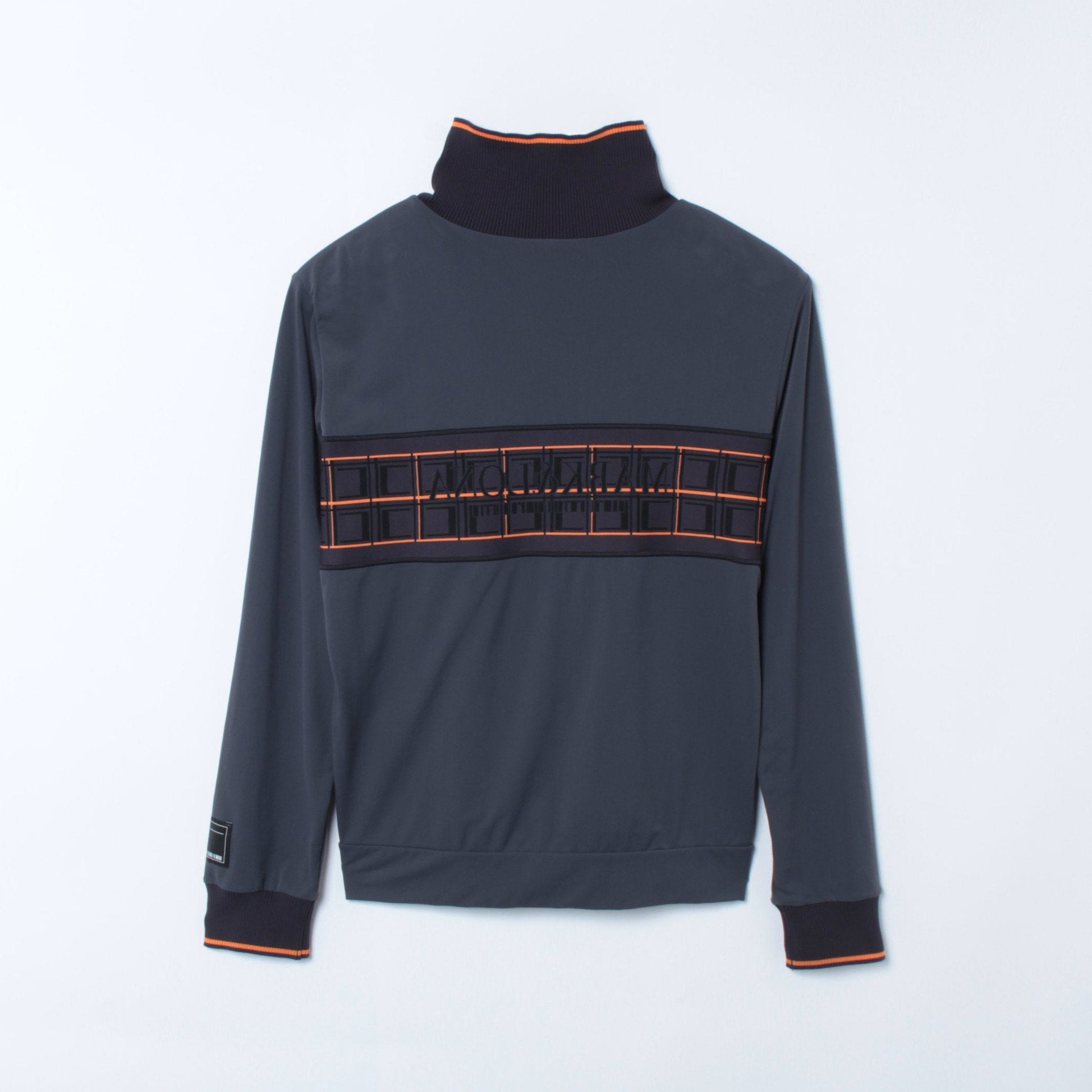 襟リブのデザインにひねりを利かせたデザインインナー。体の動きに追従するハイストレッチのマイクロフリース素材を採用。前後身頃にCODEのシグネチャーロゴをジャカードで表現したリブ、左袖にBOX型テキストロゴを織ったネームを配しました。セカンドレイヤーとしての着用を想定した、ややゆとりのあるシルエットを採用しています。