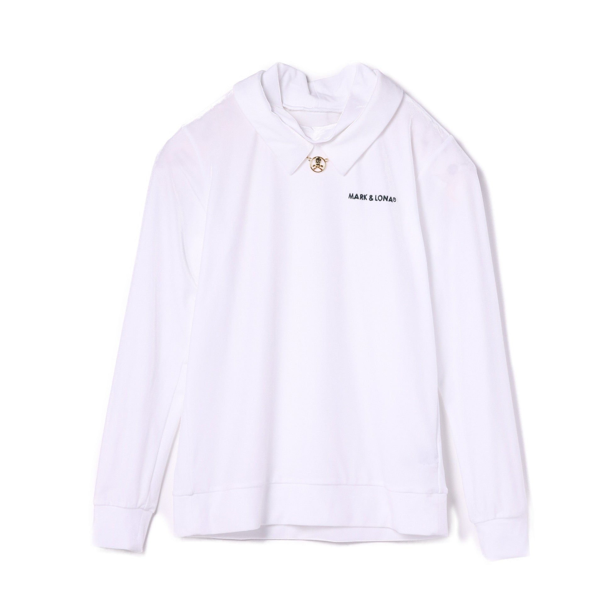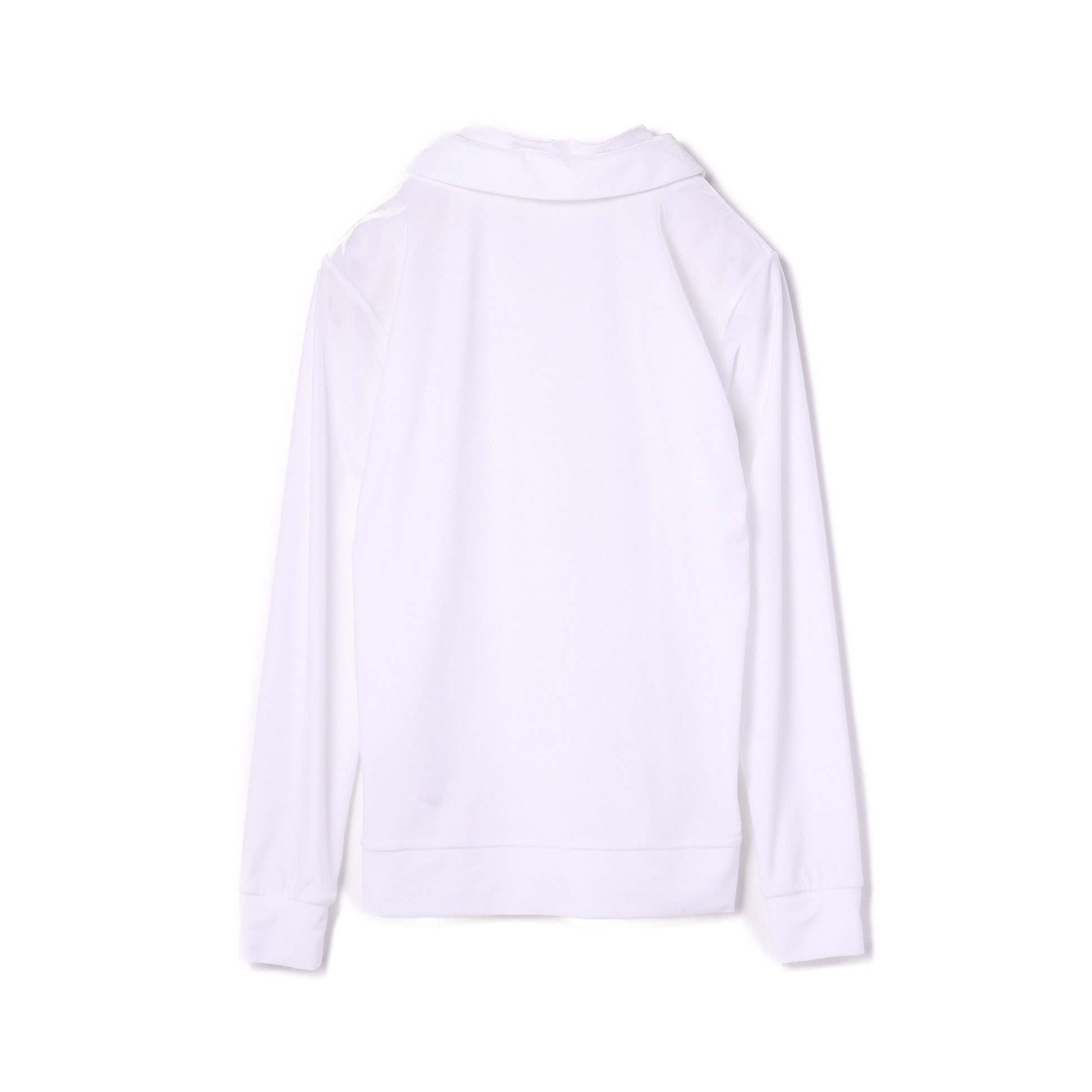 イタリアンメイドの上品なベルベット素材を採用したフェイクカラーデザインのUVインナー。フロントにサークルスカルチャーム、左胸にブランドロゴ刺繍を配置。素材特性を活かしたフィット感のあるスタイルで、1枚でもきちんと感のある着こなしができるよう、襟まわりにデザイン性をもたせました。高さのある内襟で、首元を暖かく保ちます。