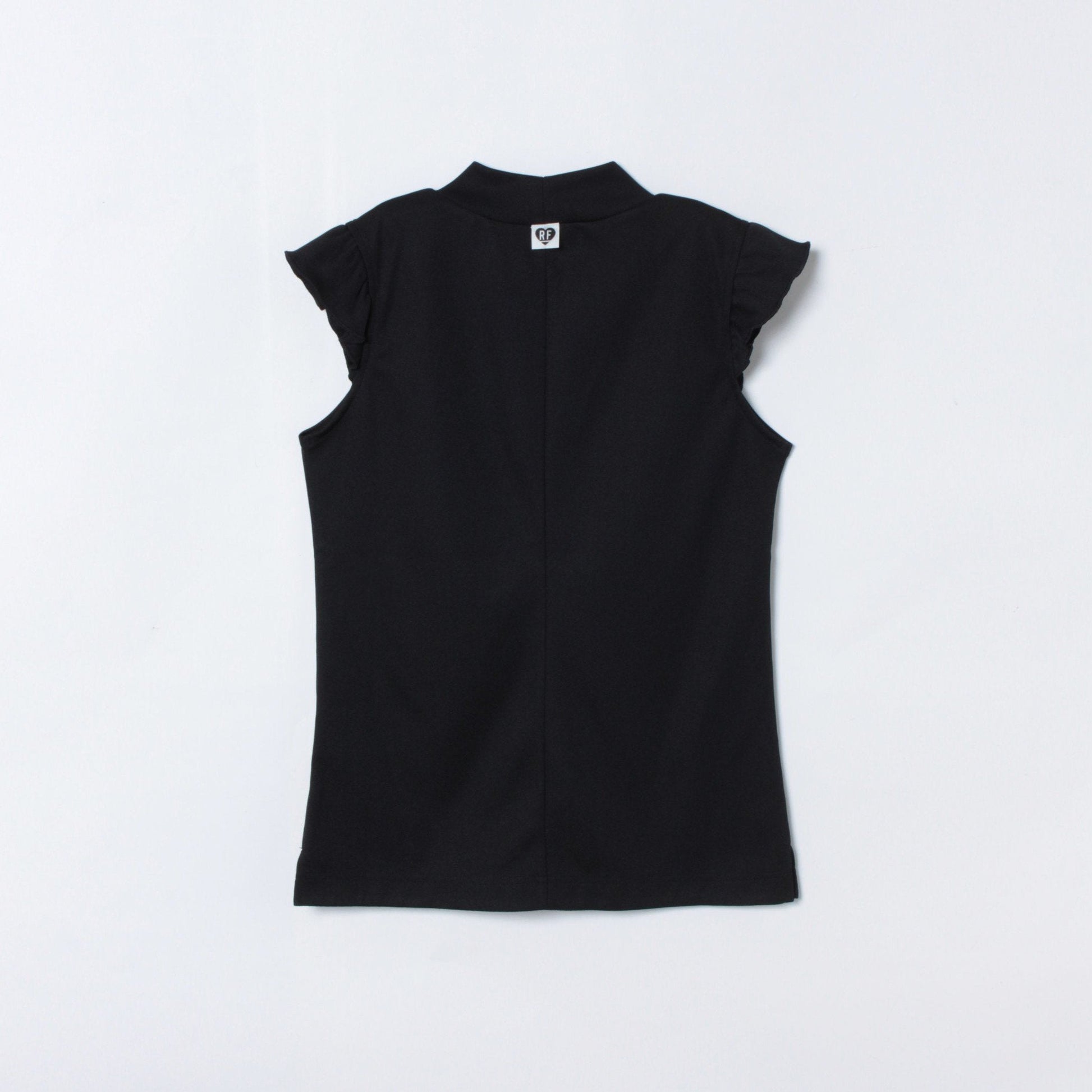 ポリエステル100%で通気性がよく、汗をかいてもさらりと涼しい着心地をキープ。ストレッチ性に非常に優れた素材で、スウィングなどのダイナミックな動きにもスムーズに対応します。首まわりの日焼けを防止してくれるハイネックデザインも嬉しいポイントです。