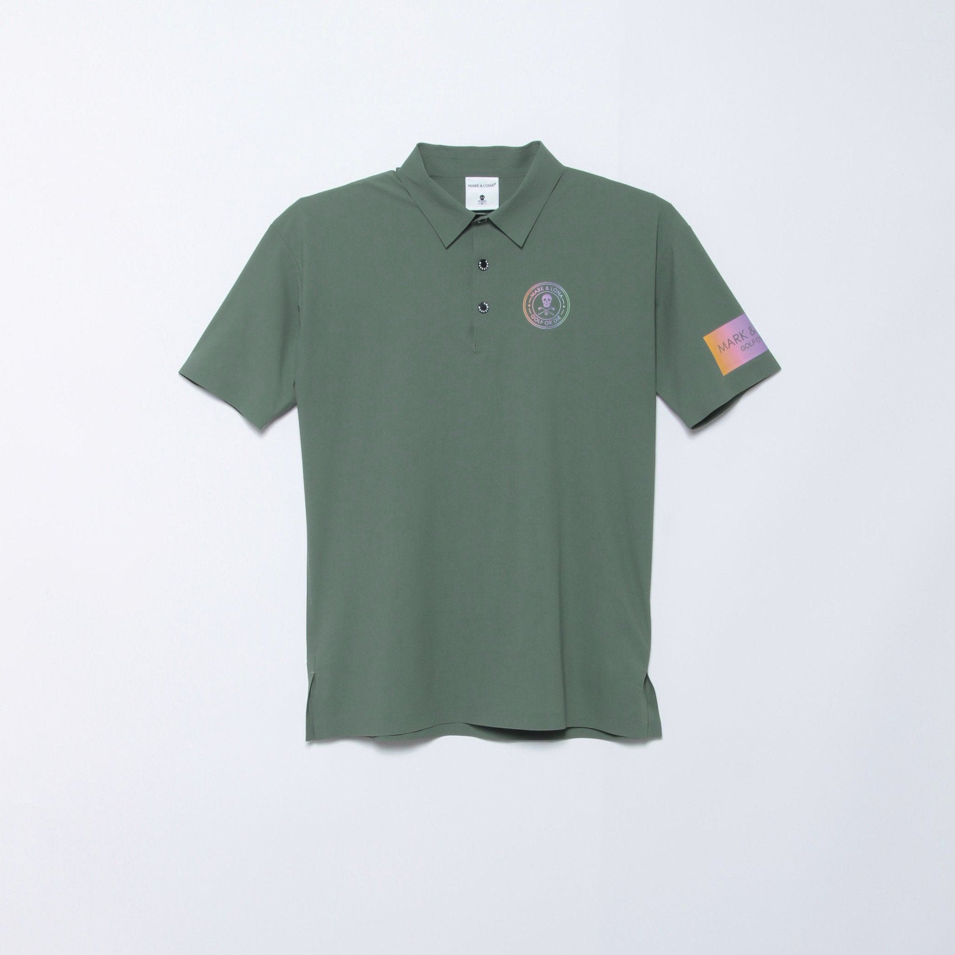 高機能素材にテクノロジーを組み合わせ、ミニマルなデザイン性と機能美を追求したCool Touch Tech半袖ポロ。左胸にサークルスカルデザインのグラデーションプリント、左袖にボックスロゴのグラデーションプリント、背中にサークルロゴデザインのレーザーパンチングを配置しました。レーザーパンチングはデザインとしてだけでなく、高い通気性を維持するのにも役立ちます。身頃と肩まわりにゆとりを持たせつつ、袖をシャープに仕上げた洗練されたスタイルに仕上げた1着です。