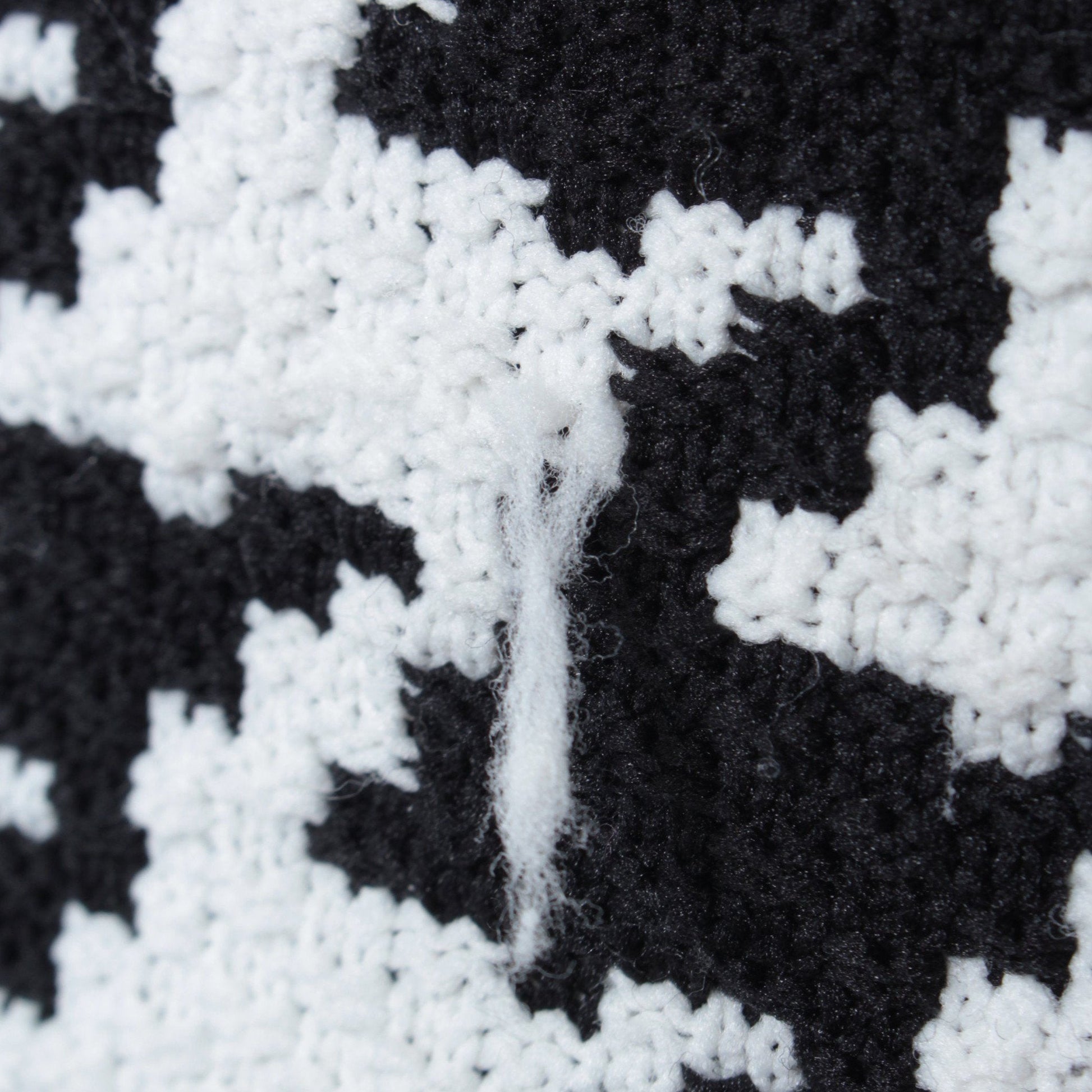 ネオクラシックな表情が魅力のスポーティな千鳥格子ニット。クラシカルな千鳥格子を特殊なテクニックで編み上げて新鮮さをプラスしました。左胸にブランクスカルに高輝度のストーンを並べたフェルトワッペン、その下にロゴが刻印されたメタルプレート、襟に今季のテーマ”HELLO CLASSIC”を多彩に表現した織りネームを配しています。やや詰まり気味の襟とコンパクトなシルエット、袖口と裾の長めリブと、トレンド感のあるパターンを採用。スタイルアップ効果も期待できるシルエットに仕上げています。