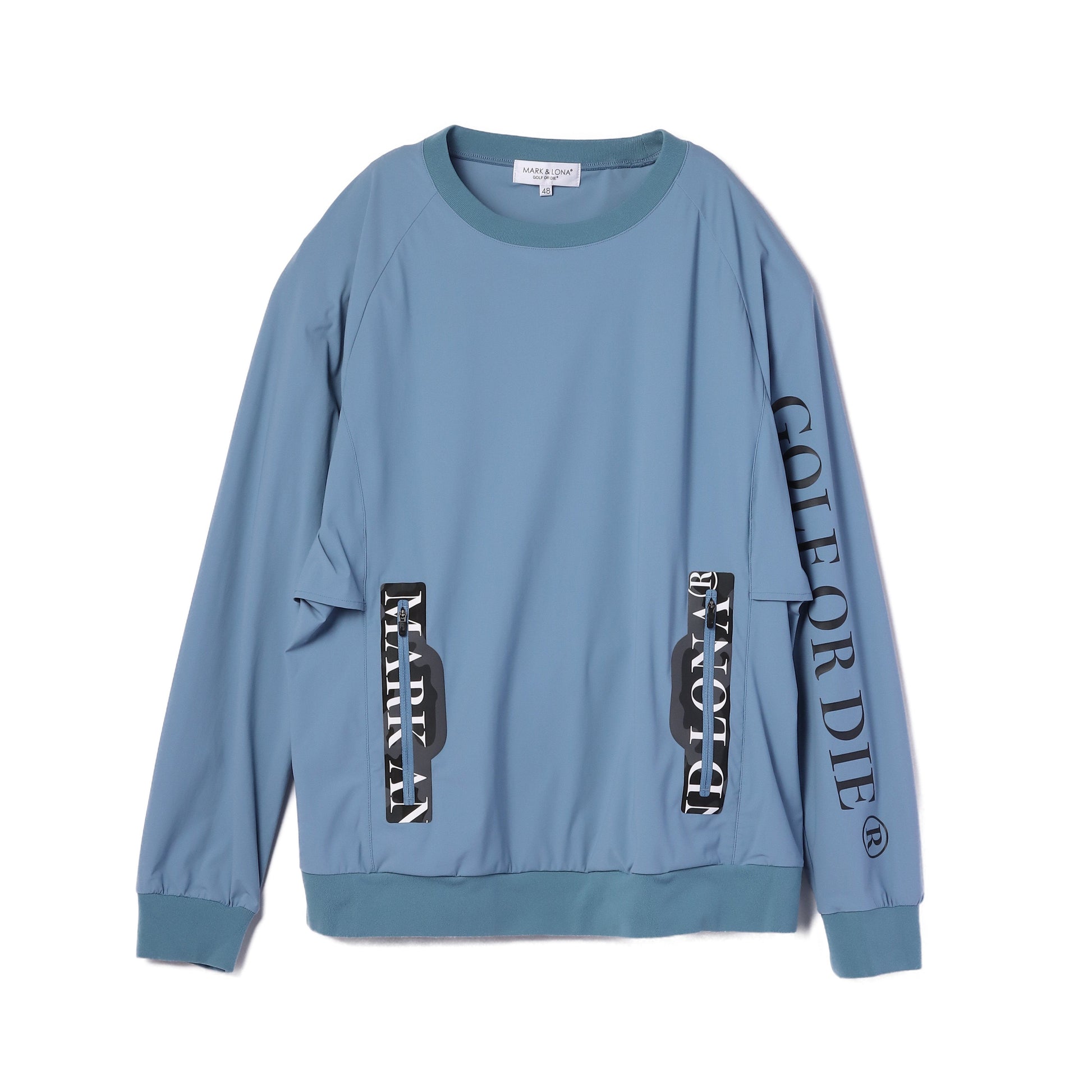 エレガントなデザインのスニードジャック。両脇のポケットにカモフラージュ柄のロゴ入りシリコンシート、左袖に”GOLF OR DIE”のロゴプリント、裾にMARK & LONAのロゴプリント、背面にサークルスカルのレーザーパンチングをあしらいました。インナーでの着用を想定した、ややゆとりのあるシルエットのパターンを採用しています。脇にはベンチレーション機能をもたせ、汗をかきやすい部分にも配慮。軽さと通気性をより向上させた実用性の高いアイテムで、ドライビングレンジやプラクティスシーンでもおすすめの1着です。同素材のパンツ(MLM-2A-AT05)とセットアップで着用いただけます。