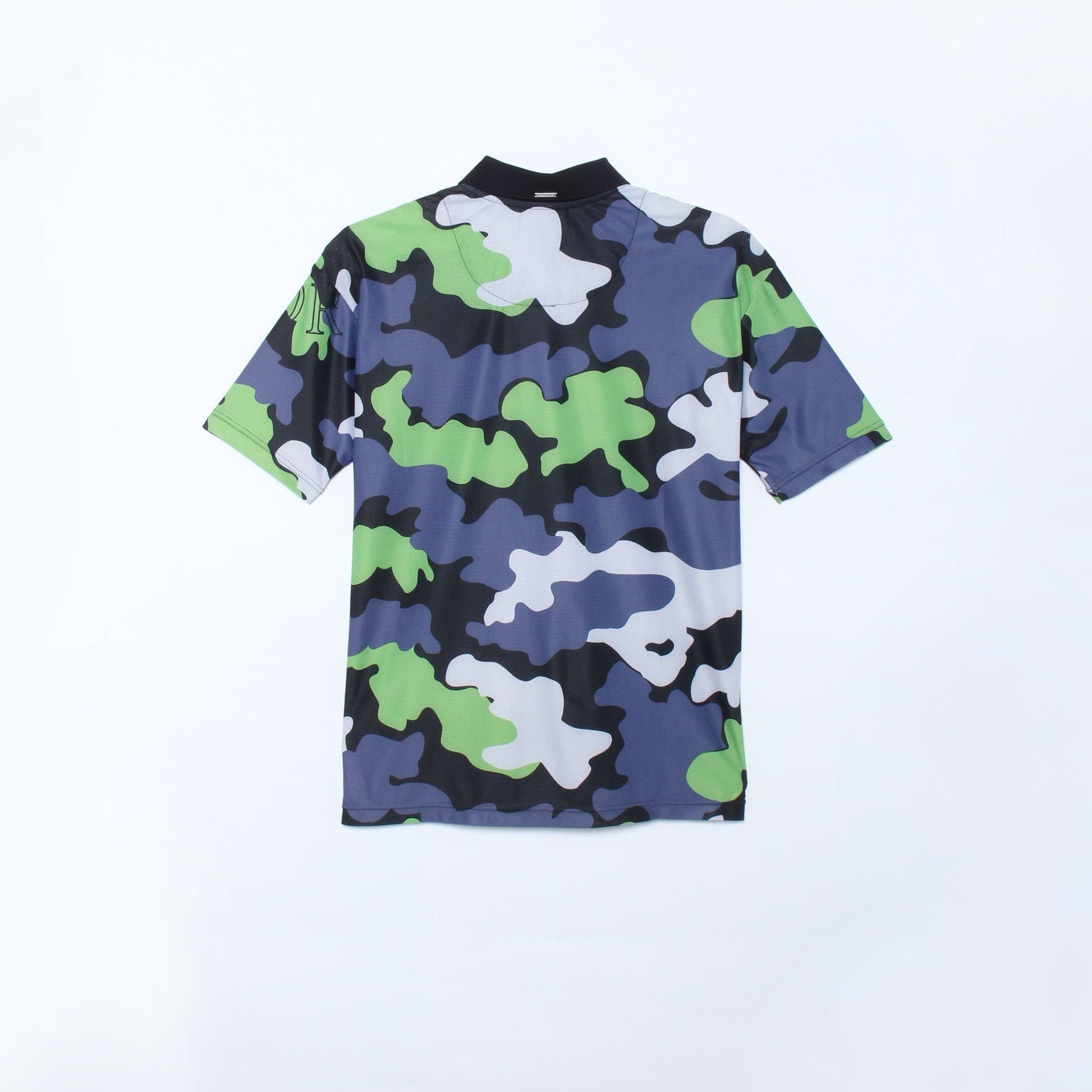 マイクロメッシュ構造により快適な着心地が続く半袖ポロ。左胸にアイアンスカルワッペン、右脇にスカルスイング刺繍、襟リブにロゴ刻印入りのメタルプレート、フロントにメタリックなロゴ刻印入りボタンを配しました。身頃と肩まわりにゆとりをもたせつつ、袖をシャープに仕上げ、動きやすさとすっきりしたシルエットを両立させる洗練されたスタイルを実現しています。