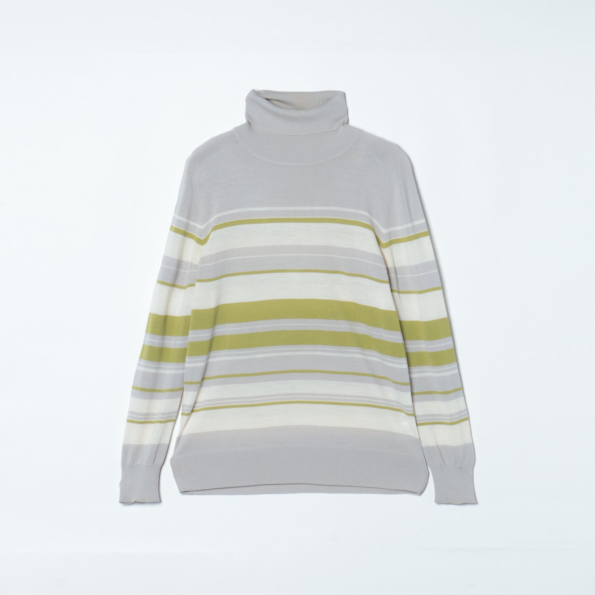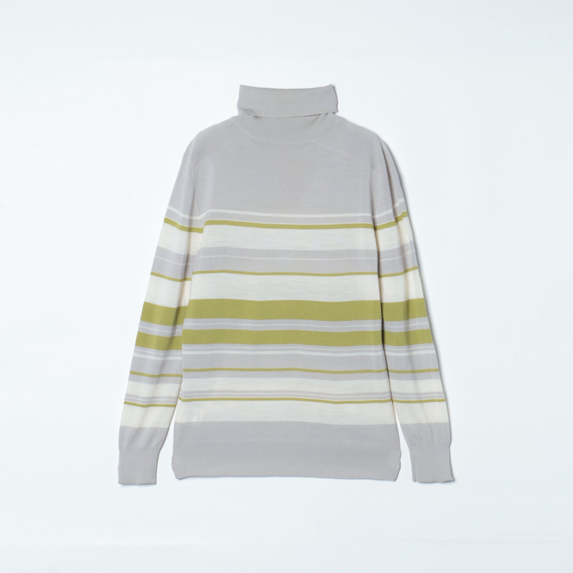 【手洗い可能】ウォッシャブルウール ランダムボーダータートルネックニット