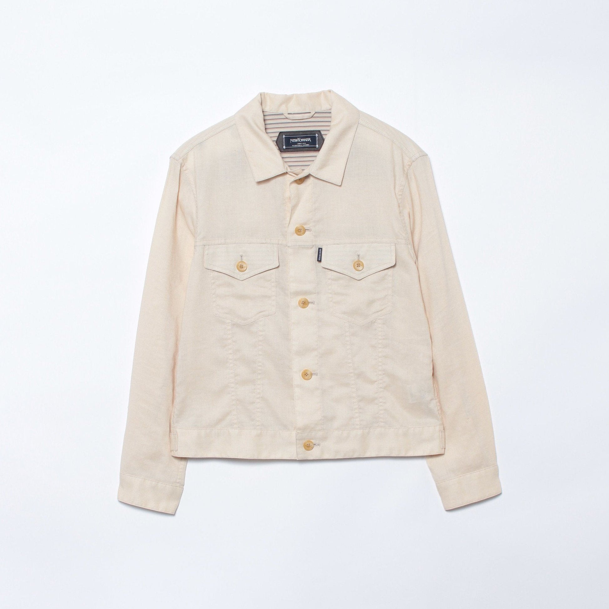 【ウォッシャブル】ポリエステル麻キャンバス ナチュラルワッシャー トラッカーブルゾン