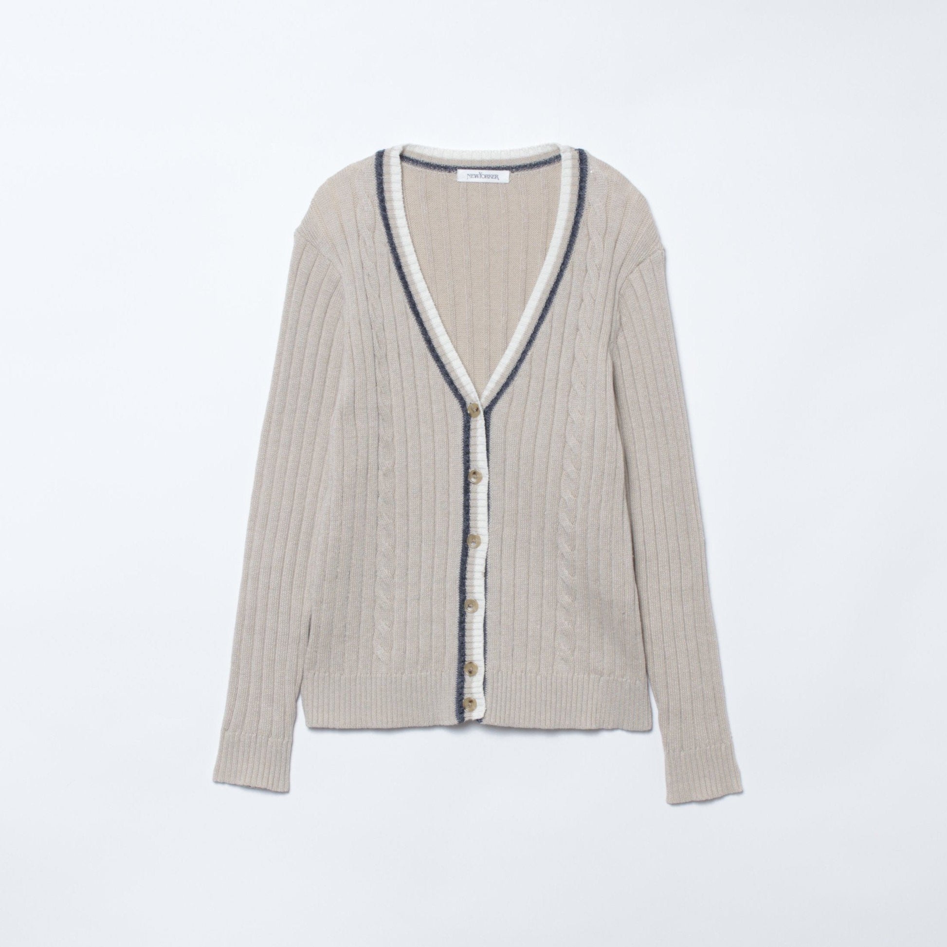 おとなチルデン リネンミックス ケーブル編みVネックニットカーディガン