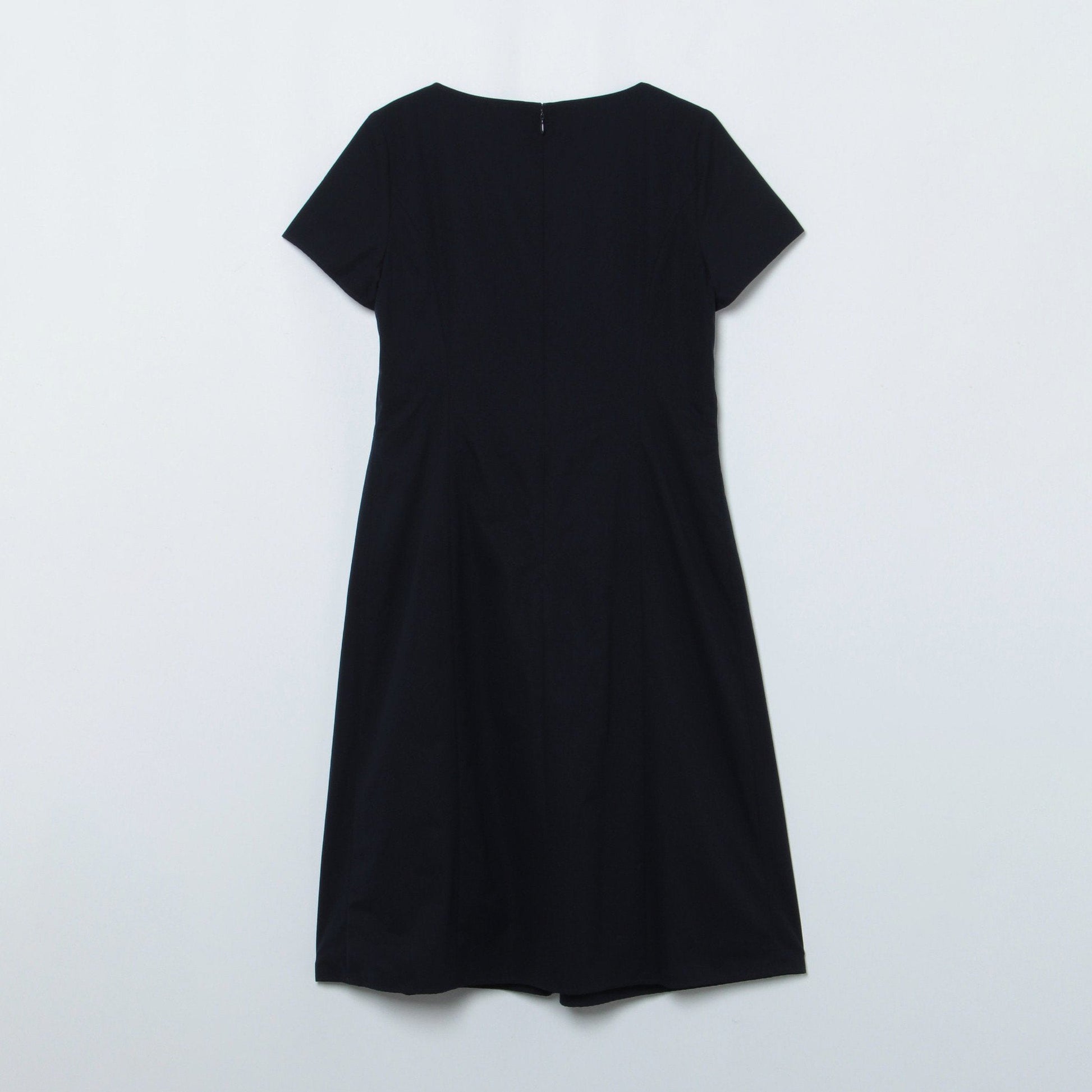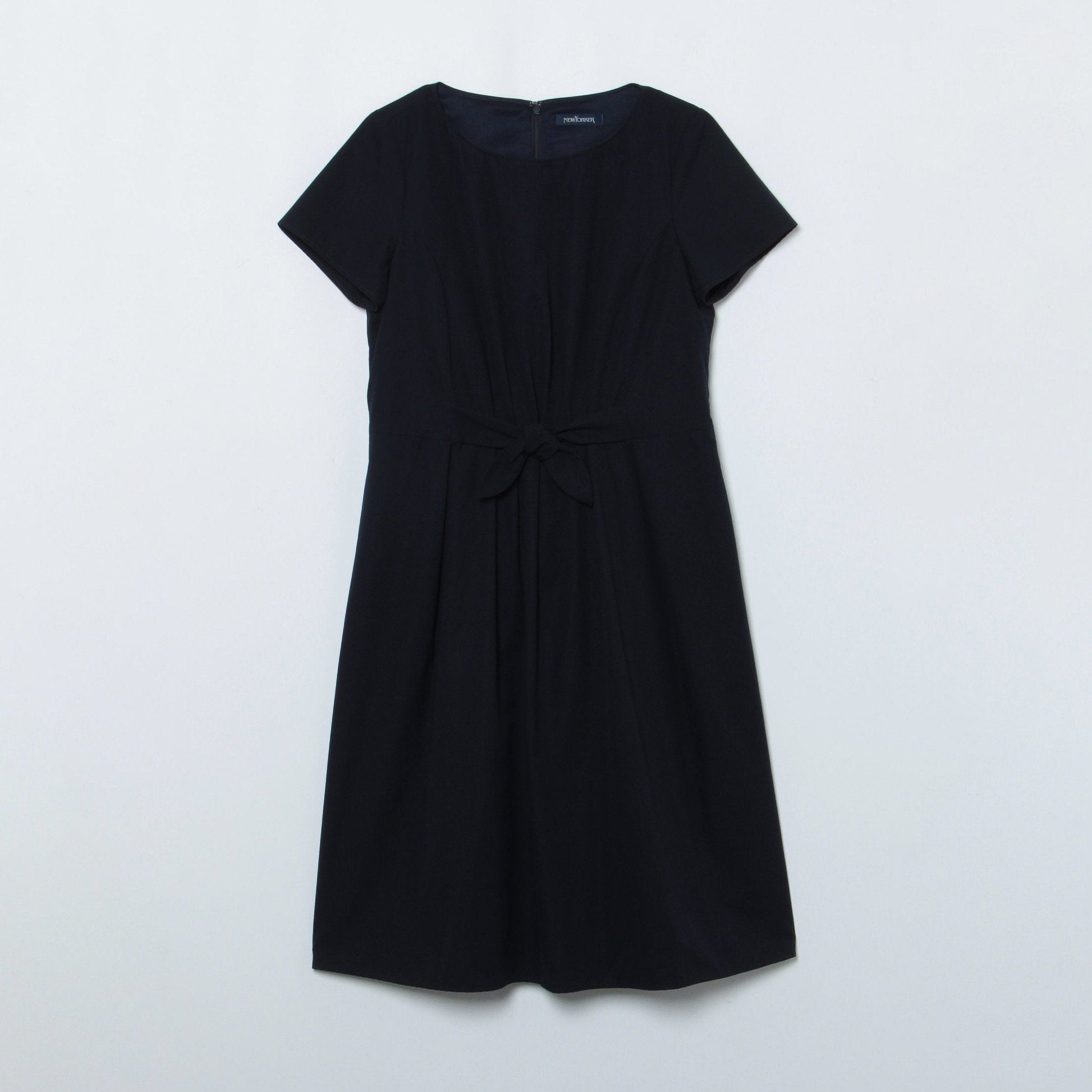 超軽量にこだわりながら、一枚で綺麗めに決まるドレスをお作りしました。ウエストのタックとリボンがアクセントになり、女性らしいメリハリのあるスタイルを演出してくれます。夏場にも一枚で気兼ねなく着こなせる半袖デザインを採用しました。