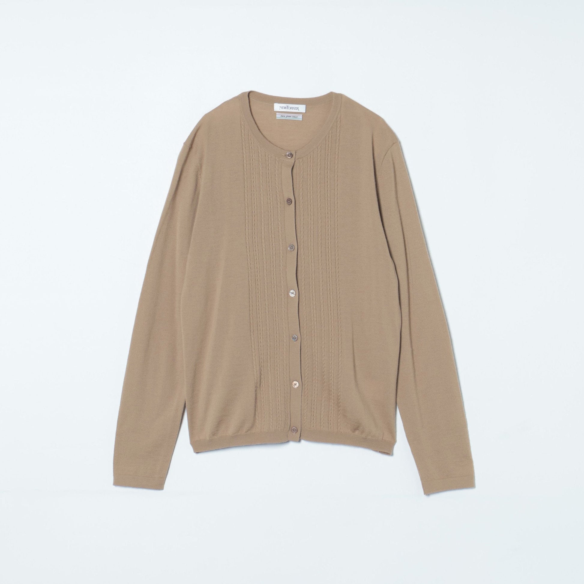 【手洗い可能】キャッシュウール クルーネックケーブルニットカーディガン