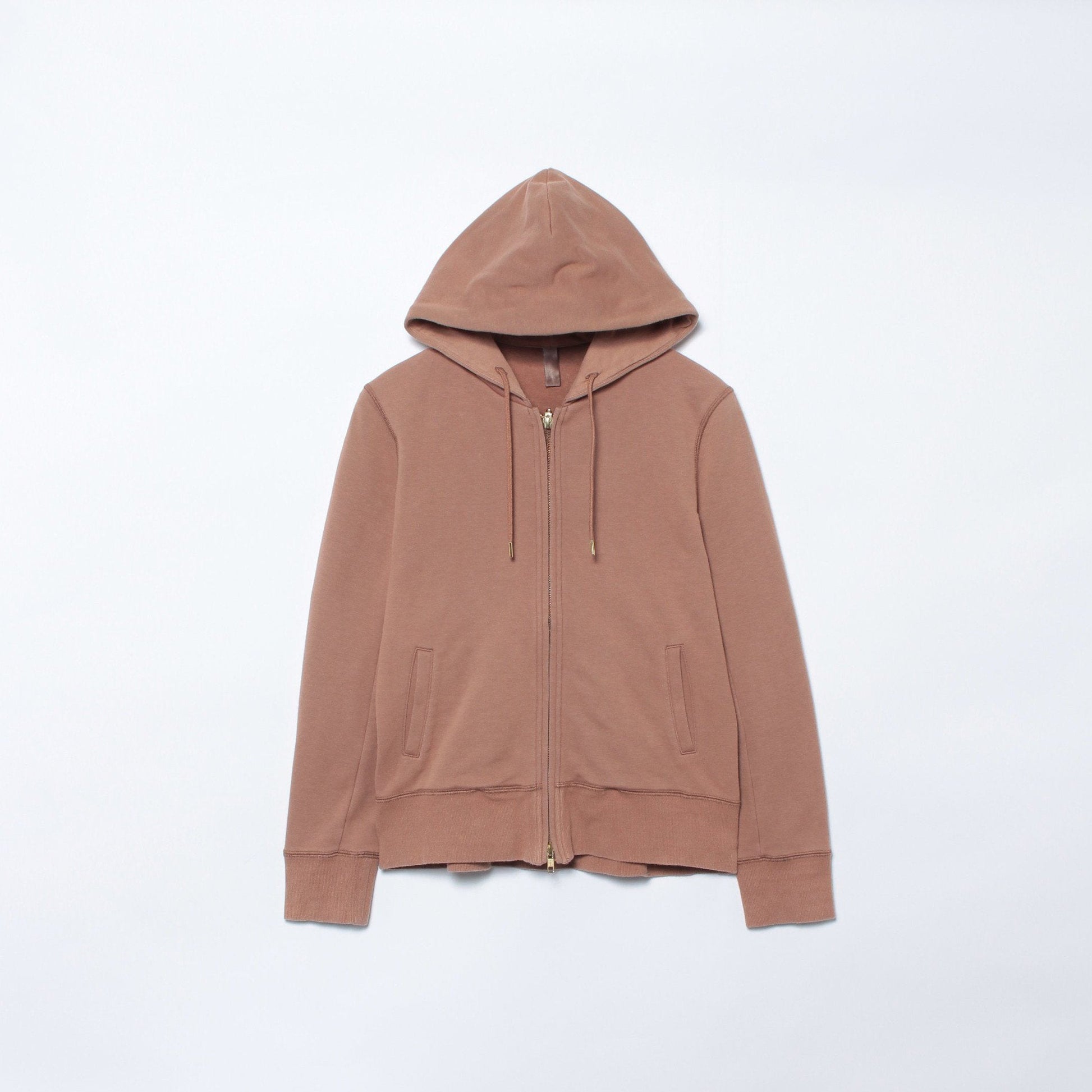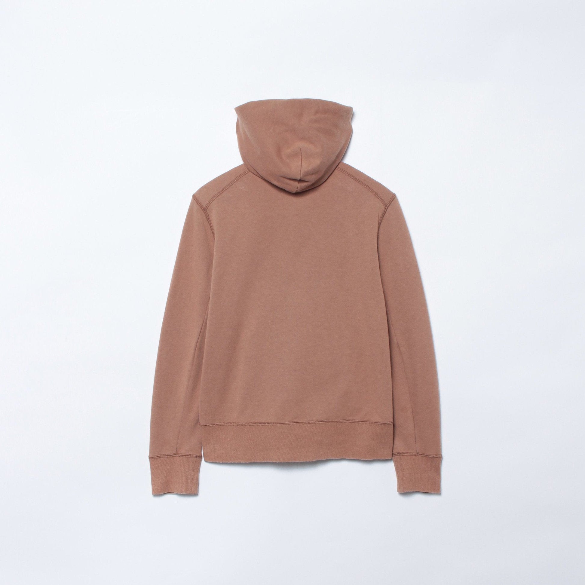 脇線をなくすことで、すっきりとしたプレーンな仕上がりに。重ね着しても胴回りがもたつきにくく美しい着こなしに導きます。また、パーカでよく用いられるカンガルーポケットではなく、ジャケットやコートなどで用いられる玉縁ポケットを採用し、よりシャープな印象に仕上げました。