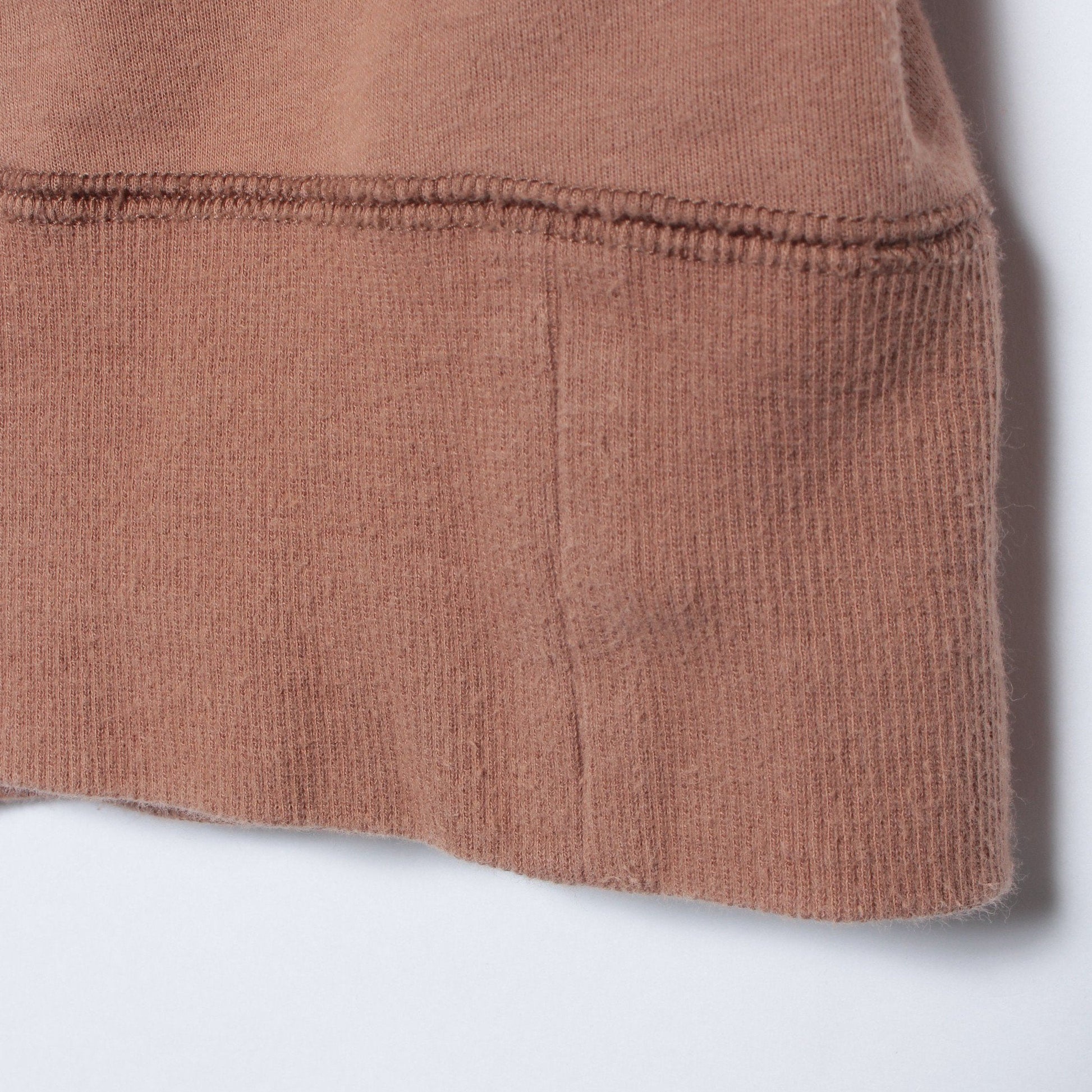 多くのパーカは裏毛素材で作られていますが、裏パイル生地を採用し、パイル面にプラチナヴェール加工(超微起毛加工)を施して秋冬らしいタッチにアップデートしました。しなやかな風合いで肌触りが良く、表面はよりクリアで綺麗な見た目に仕上げました。