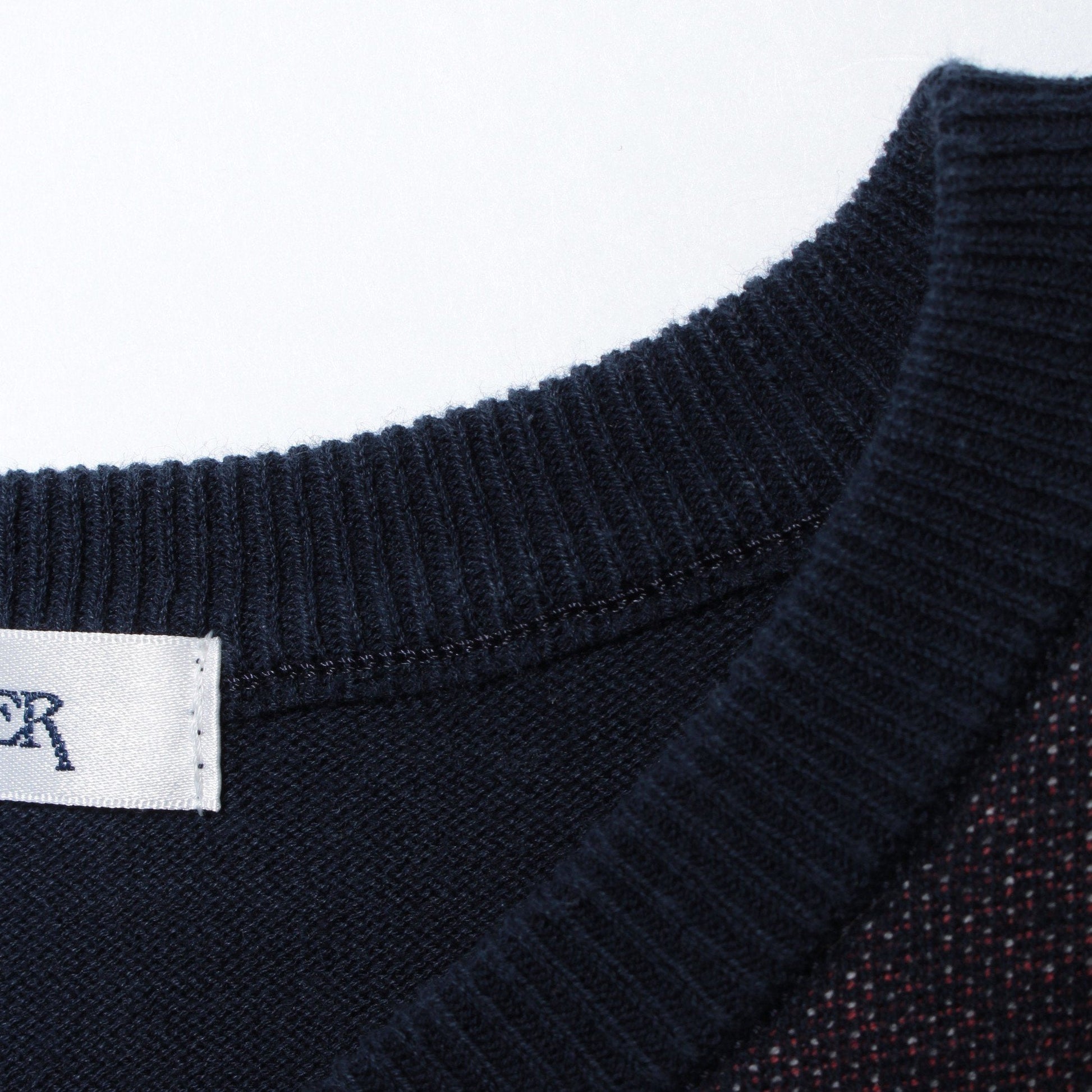 BIGハウスタータンが目を惹くクルーネックカーディガン。華やかな柄行きながら、上質な糸で緻密に編み上げることでカジュアルになりすぎず落ち着いた雰囲気に。同素材の半袖プルオーバーとのアンサンブルスタイルもおすすめです。カラーはベーシックなホワイト、ネイビーの2色展開。