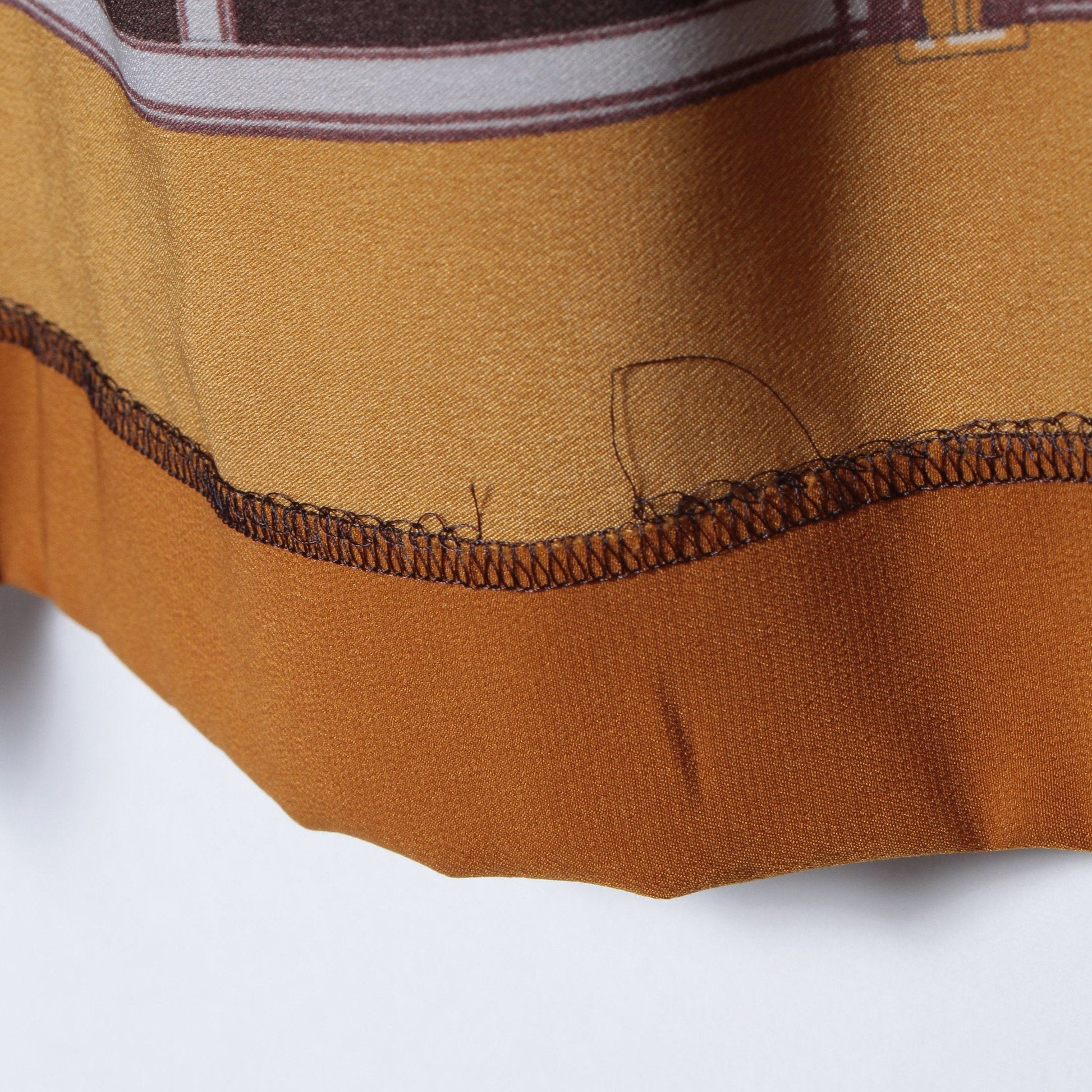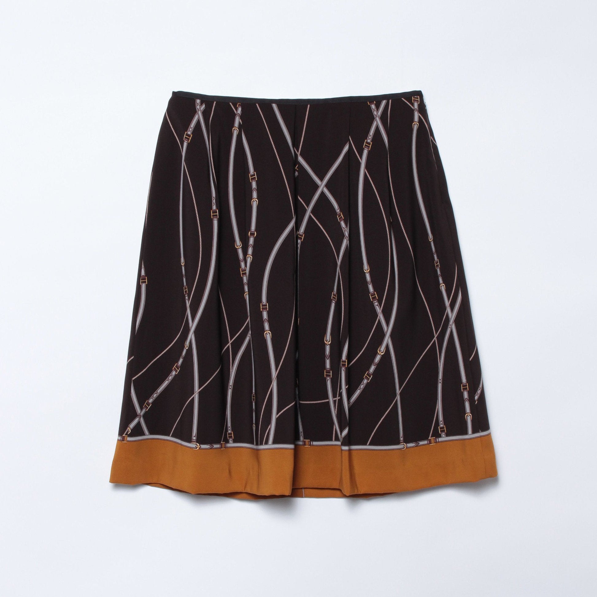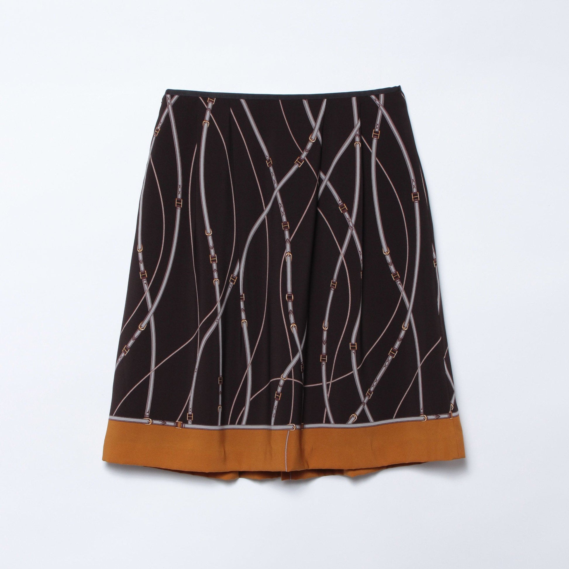 暑さが残る晩夏から秋気分を楽しめる秋色プリントスカート。大人の女性に相応しい落ち着いた色合いに、上品なスカーフ風プリントがポイントです。