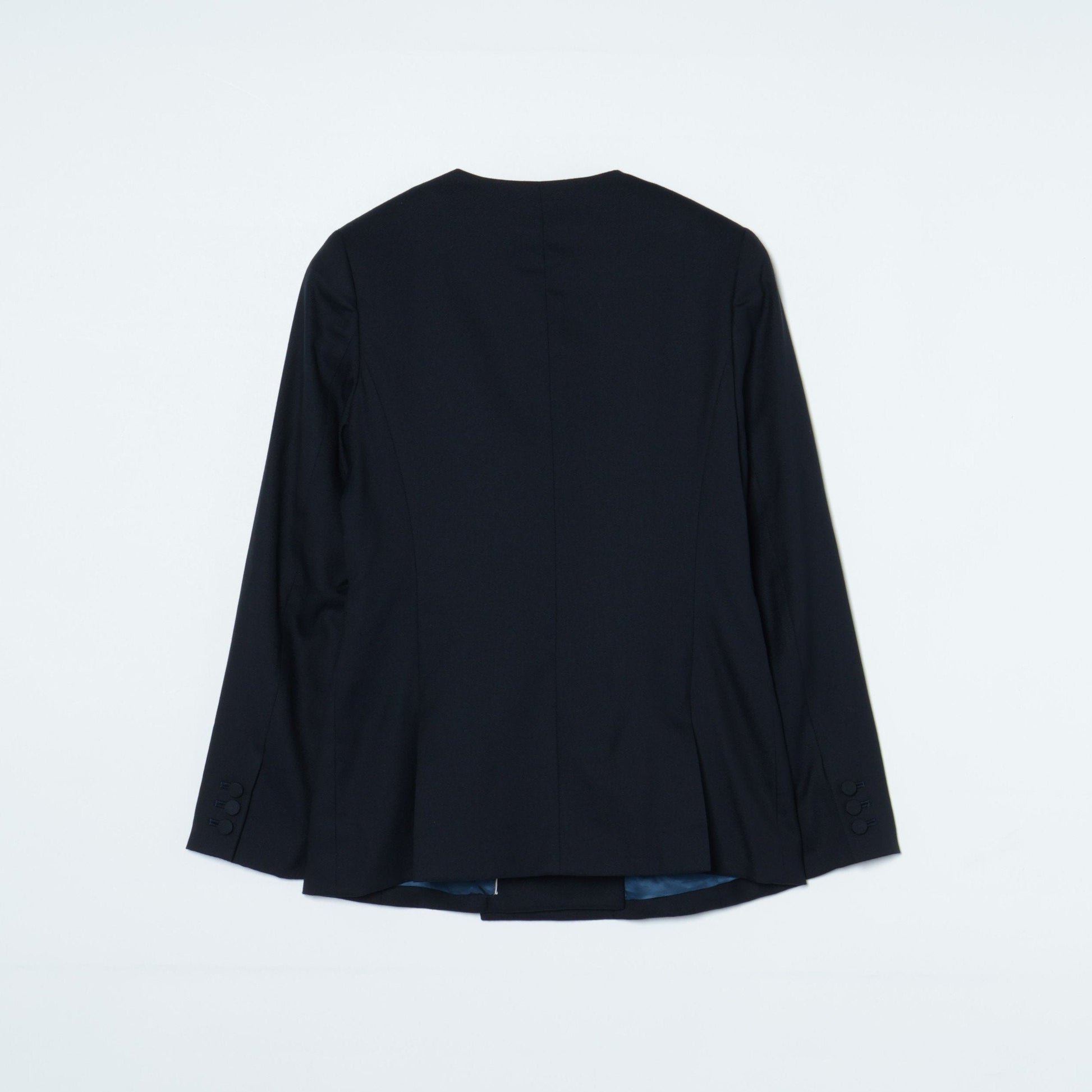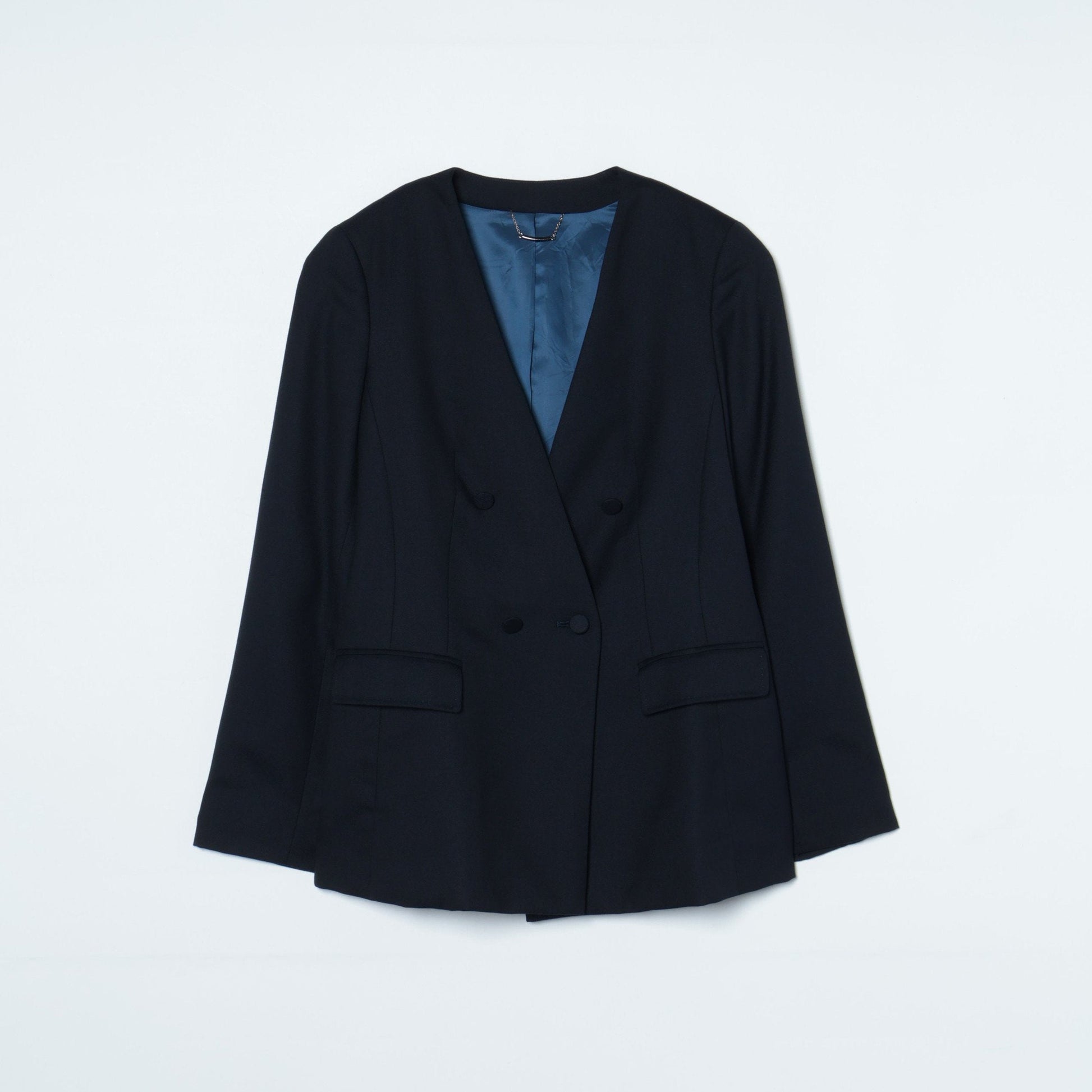 ウールシルクストレッチ ノーカラーダブルブレザー