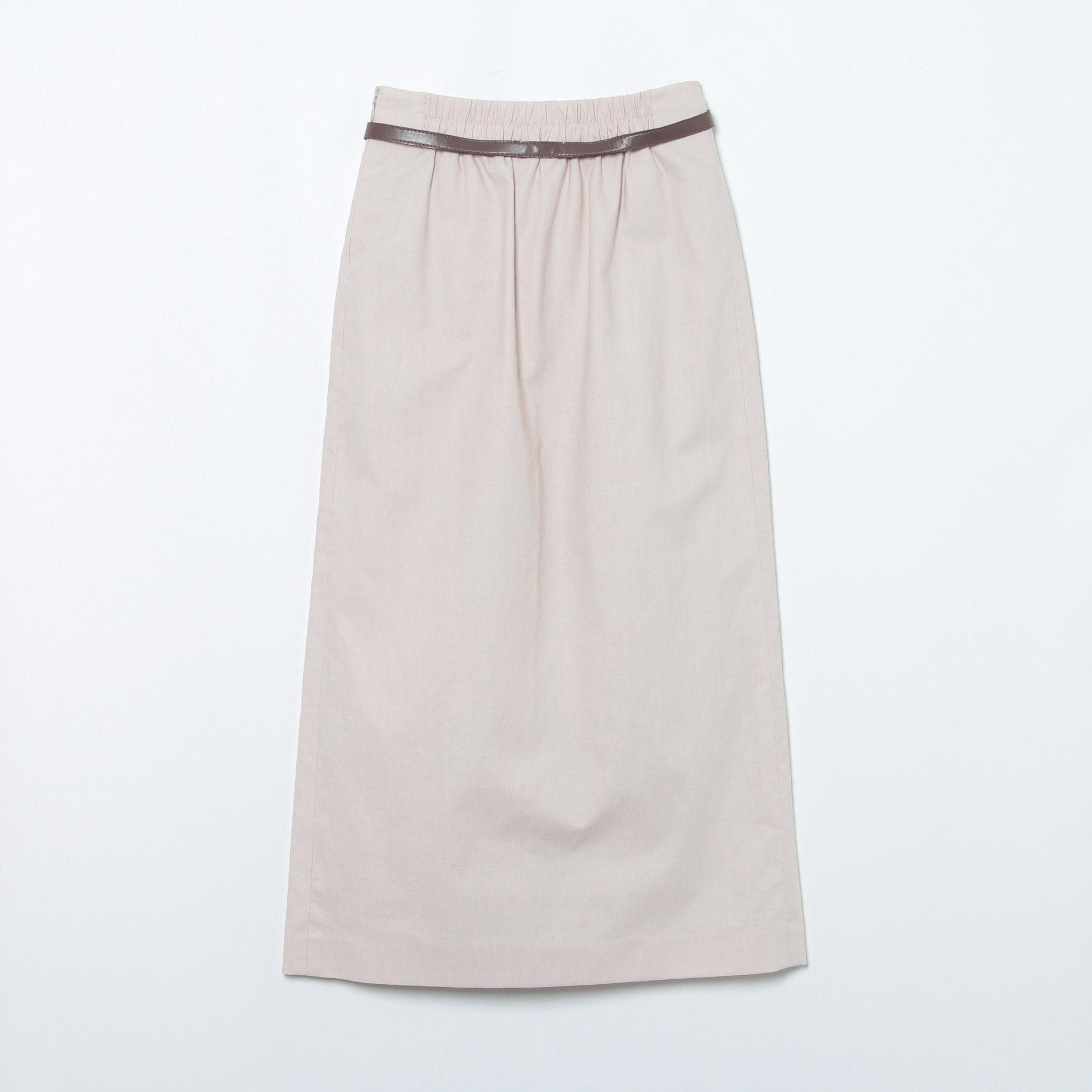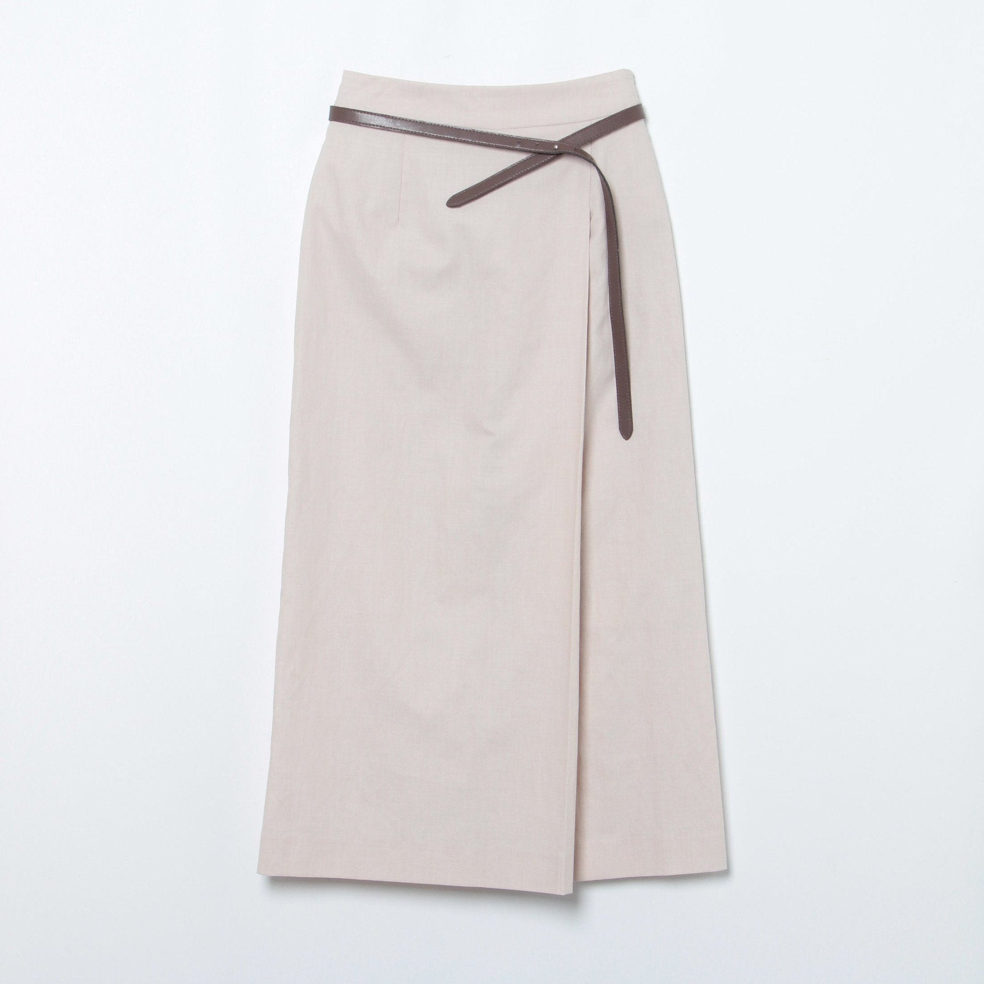 甘めにもシャープにも着こなせる洗練されたシルエットが魅力の、ベルト付きラップ風スカート。プレーンなテイストで着回し力に優れたアイテム。清涼感のある素材で春から長く楽しめます。