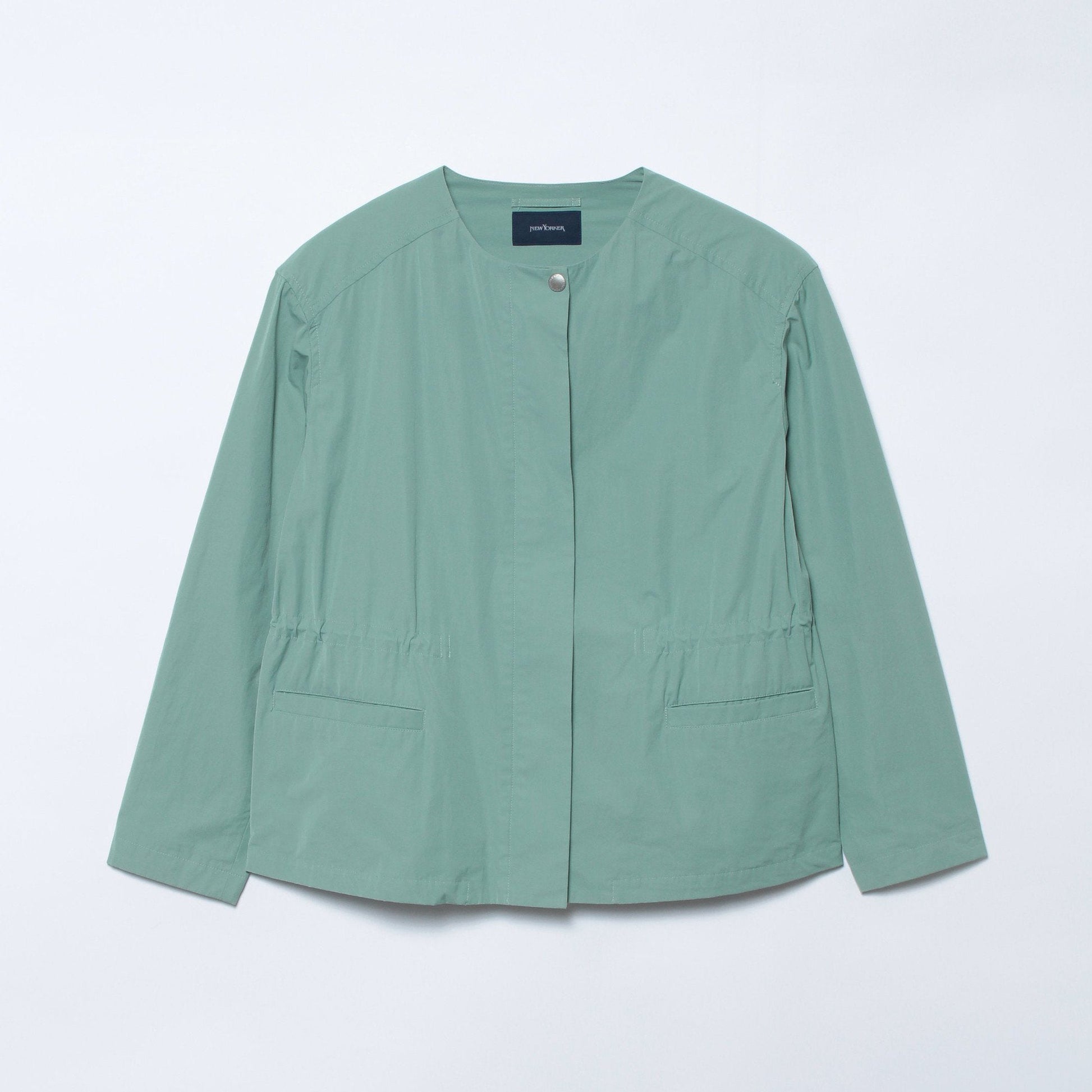すっきりとしたノーカラーは、シャツやクルーネックのトップスとも合わせやすく、ライトアウターとして重宝する1着。巻物でのアレンジも映えるので、何通りもの着こなしを楽しめます。