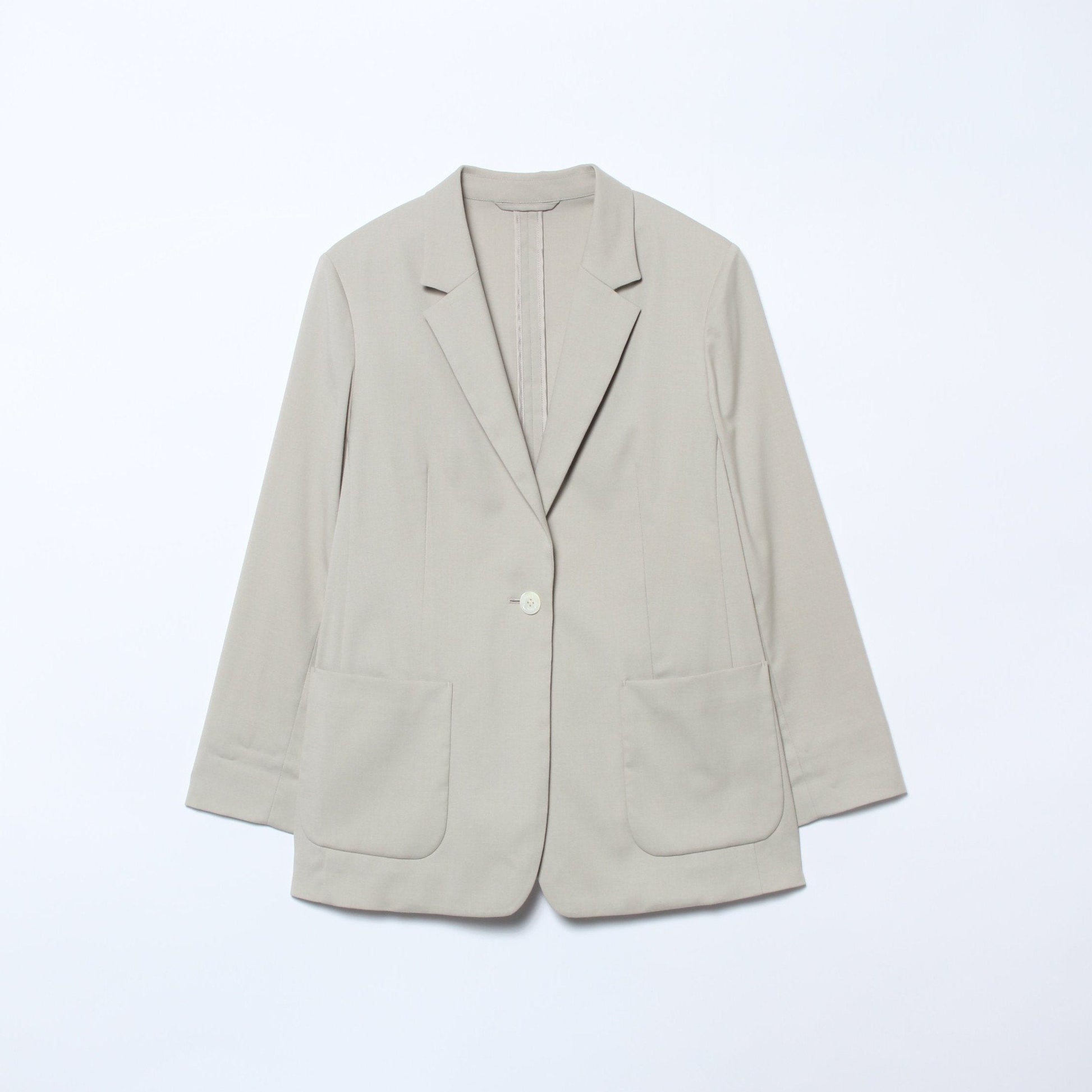 1釦のテーラードジャケット。ボクシーなシルエットに長めの着丈で、程よくマニッシュな着こなしが叶います。またパッチポケットで日常使いしやすいカジュアル感を備えつつ、ステッチのない仕上げですっきりと上品に仕上げました。袖口はスリット入りで、折り返すとより軽さのあるスタイリングが楽しめます。裏地なし。